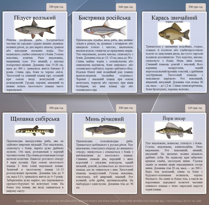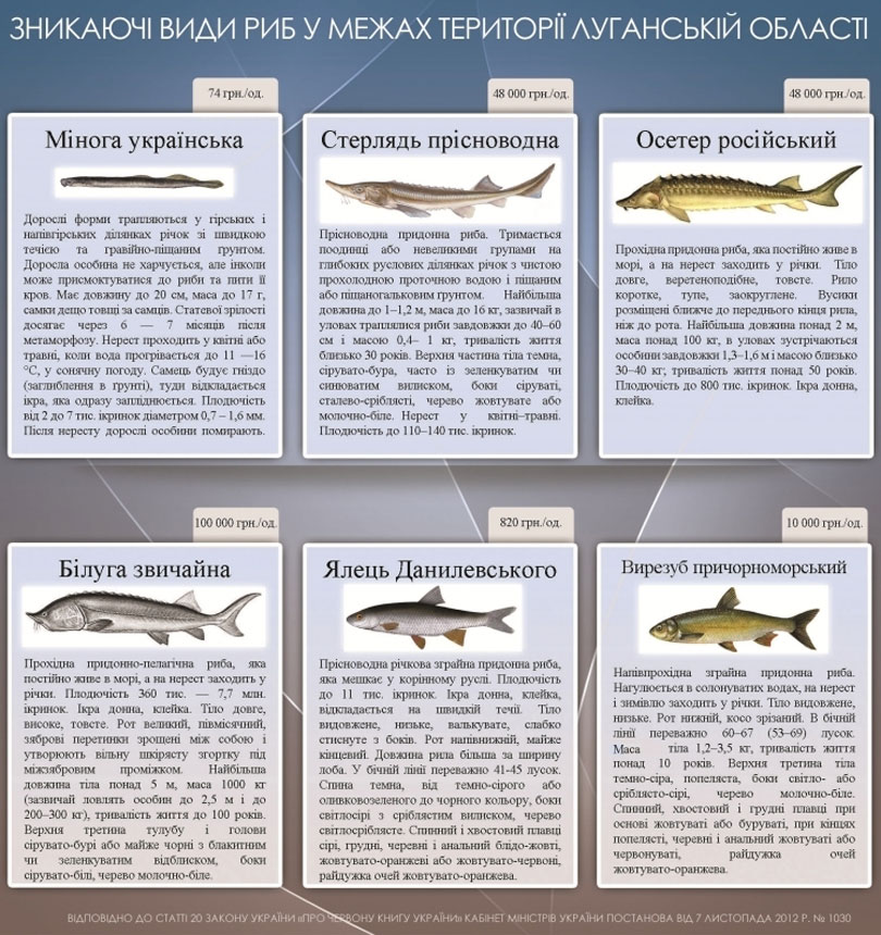 Луганскрыбоохрана представляет Вашему вниманию информационный стенд об исчезающих видах рыб в Луганской области и суммы компенсаций за нанесенный ущерб начисляемые за их вылов (плюс сумма штрафа 340-680 грн.).