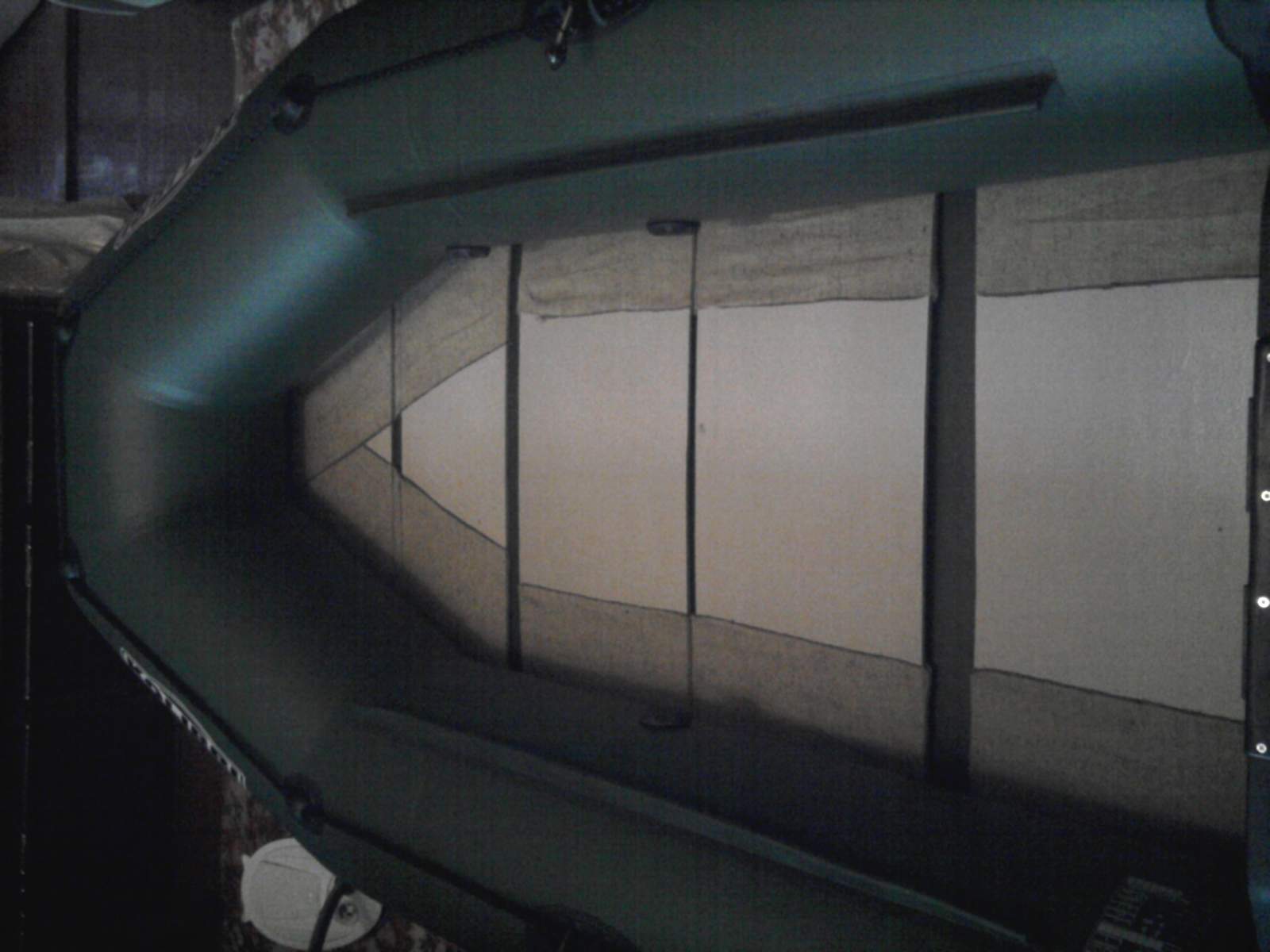 Цей настил я виготовив власноруч. Використовував фанеру тощ. 10мм., водостійку. Покрив її автогрунтівкою, змішеною з епоксидним клеєм. Окантовка пошита з брезенту. Носові вставки шириною 250мм в вигляді книжки, далі підніжки, шириною 380мм теж, у вигляді книжки, і остання, кормова теж шириною 380мм, одна. Застилаю все дно. Уже двічі був на воді, прекрасно. Встаю на повний зріст, тримає фанера добре. На останній рибалці, 31 березня, навідь дощем і снігом добряче намочило, дно не набрякало. Човном теж задоволений. Стійкий до хвиль, висотою 40см. на добрячому вітрі у 10 балів. Використовую поки що движок Піднебесної Фішер 2,5. У мене до Вас запитяння. Скільки коштуватиме подібний човен КМ260, камуфляжного кольру, і чи такі випускаються? З повагою Віктор.