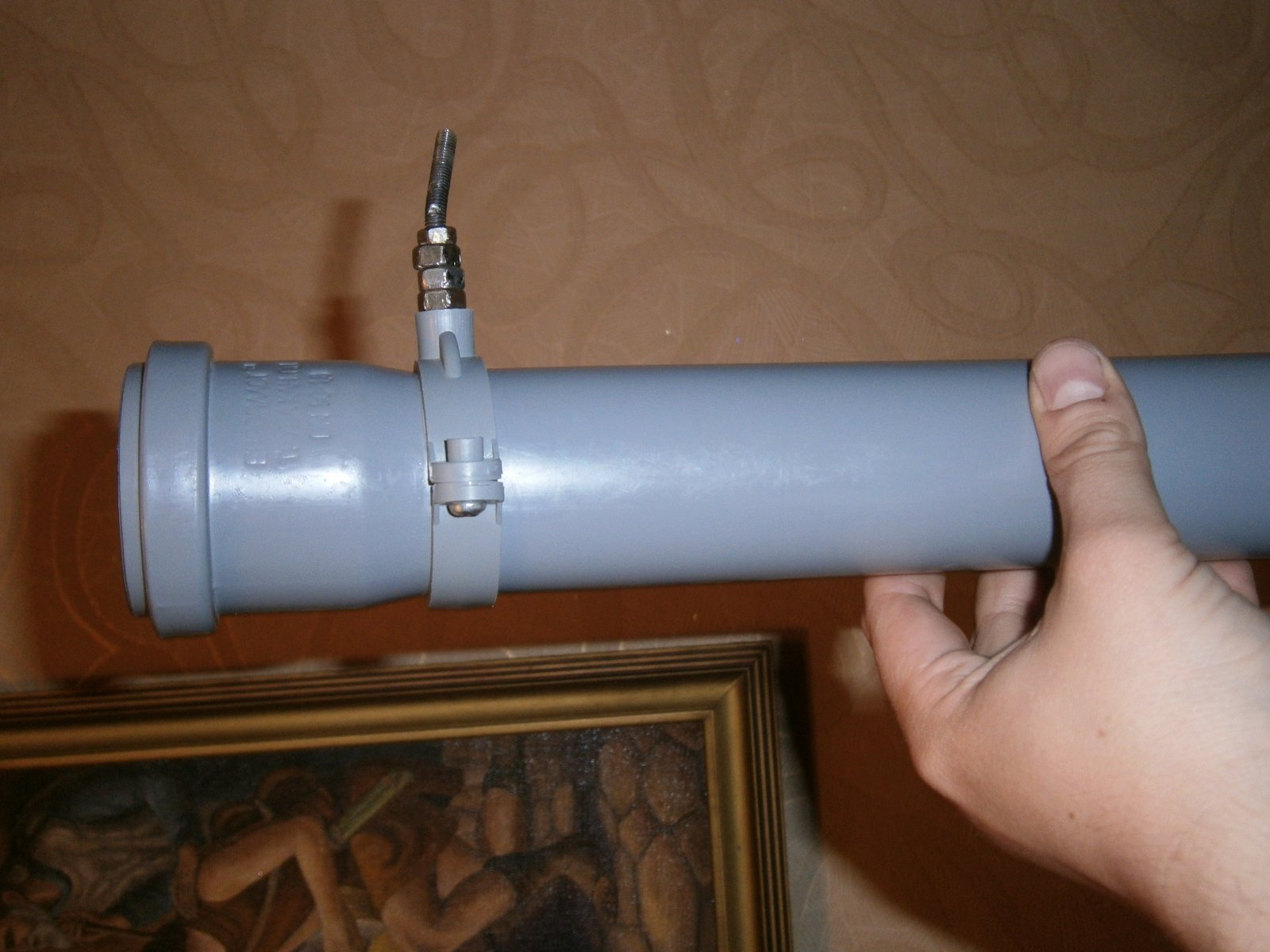 Початкові матеріали: труба водопровідна д.50, два хомути для кріплення ціє труби ( дюбель-шурупи, які в комплекті ідуть в аут ), рогач «фабричний» ( його також розбираємо, використовуємо тільки нижню трубку з отвором ), болт 6х60