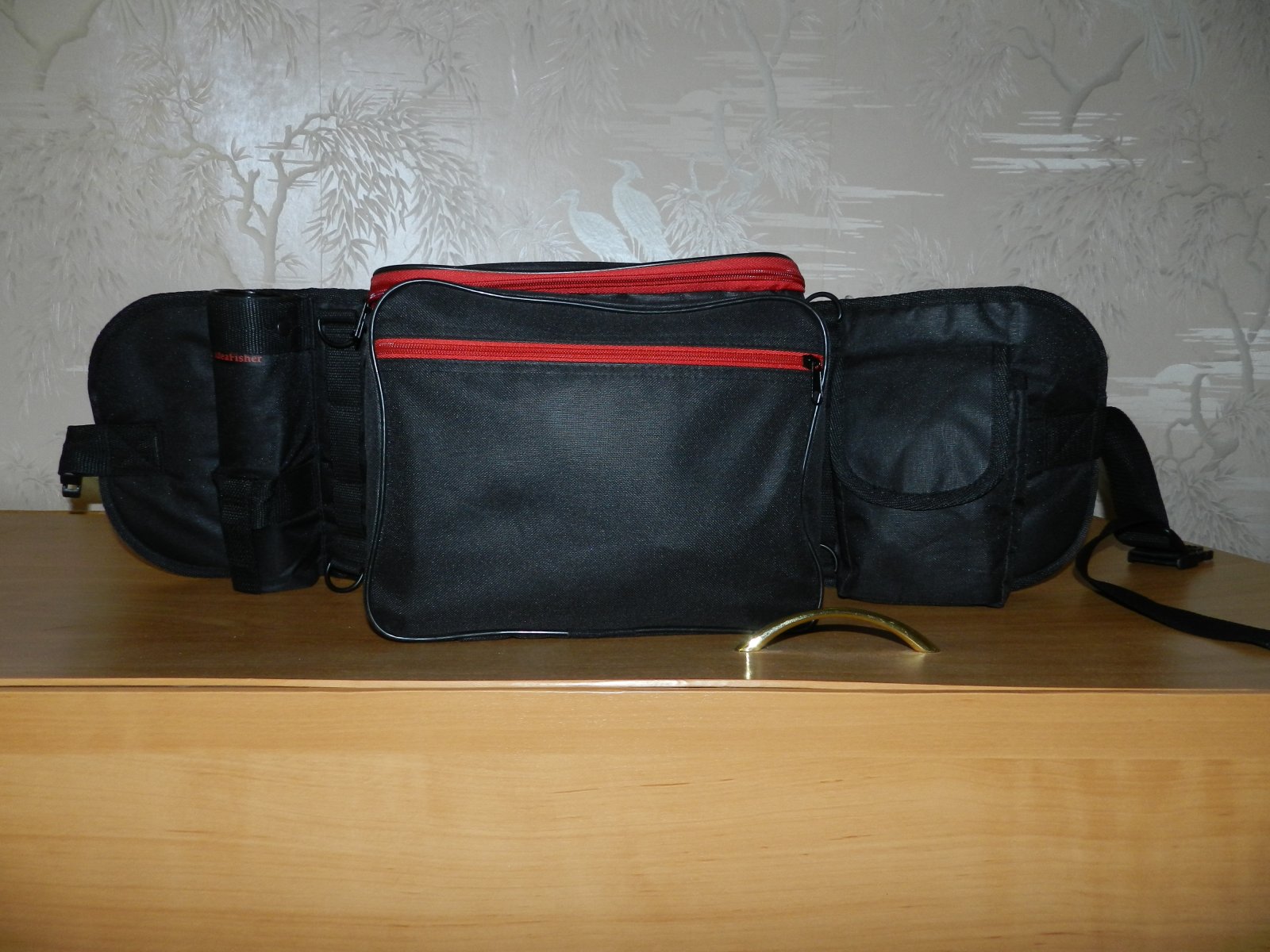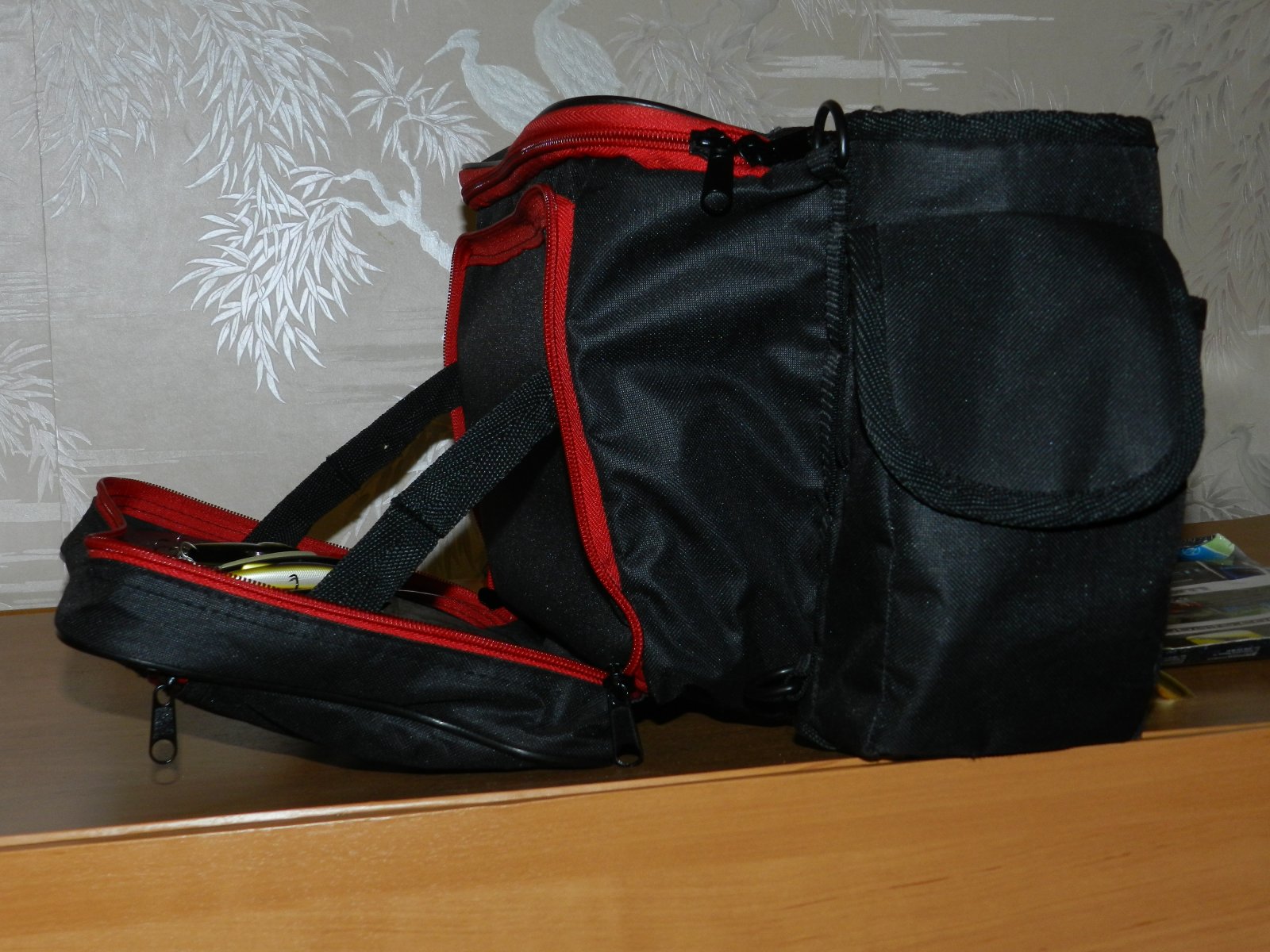 Отделения у сумки достаточно большое, у меня без проблем туда поместилось пару коробок. Что порадовало, есть пару кармашков, для телефона итд. Использую по назначению. Так как стоя в забродах, изымать его из кармана джинс не так удобно. Самое первое отделение отлично вместило в себя пару перчаток, зевник и зажим , а так же какие-то мелочи.