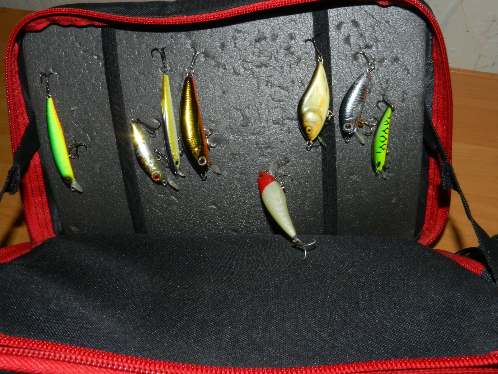 Решил я эту проблему просто, но не сильно эстетически красиво.. пока руки не дошли. Вырезал из обложки журнала "флагман" (ничего личного :D) себе картонку по размеру этого отделения и воблеры теперь не цепляются.