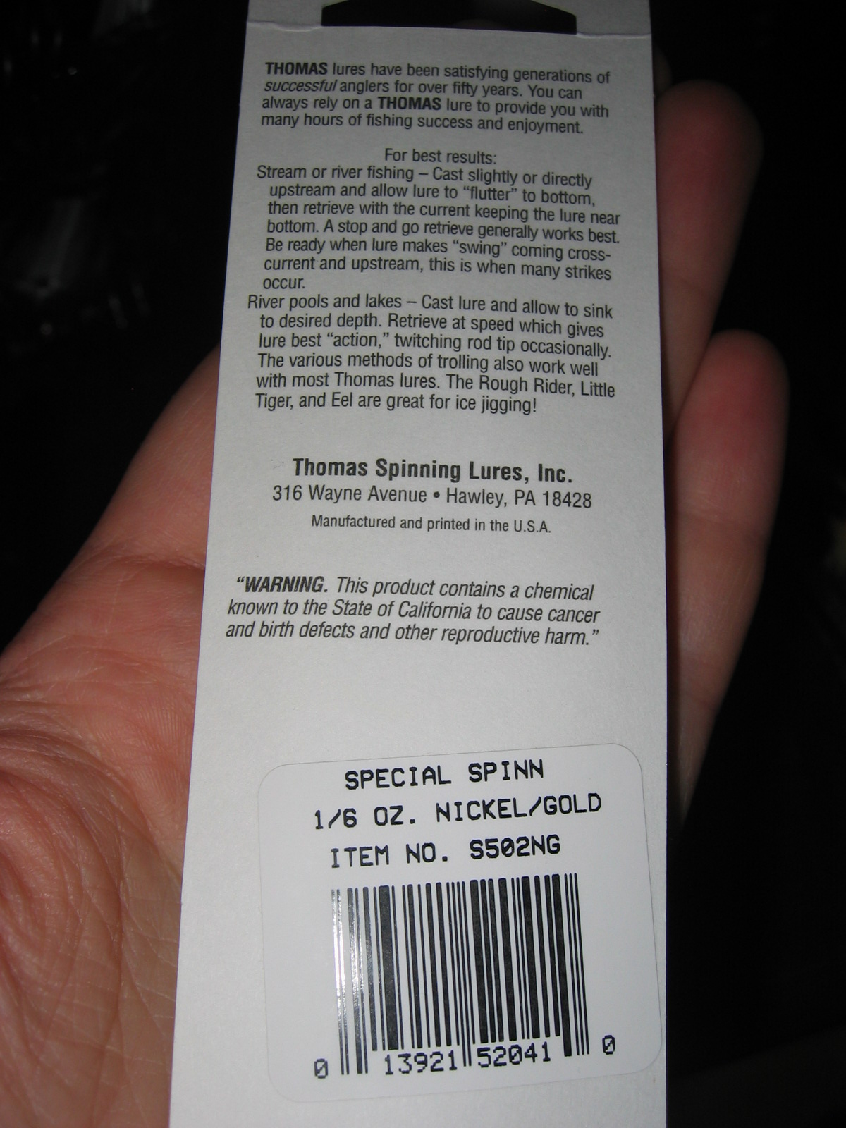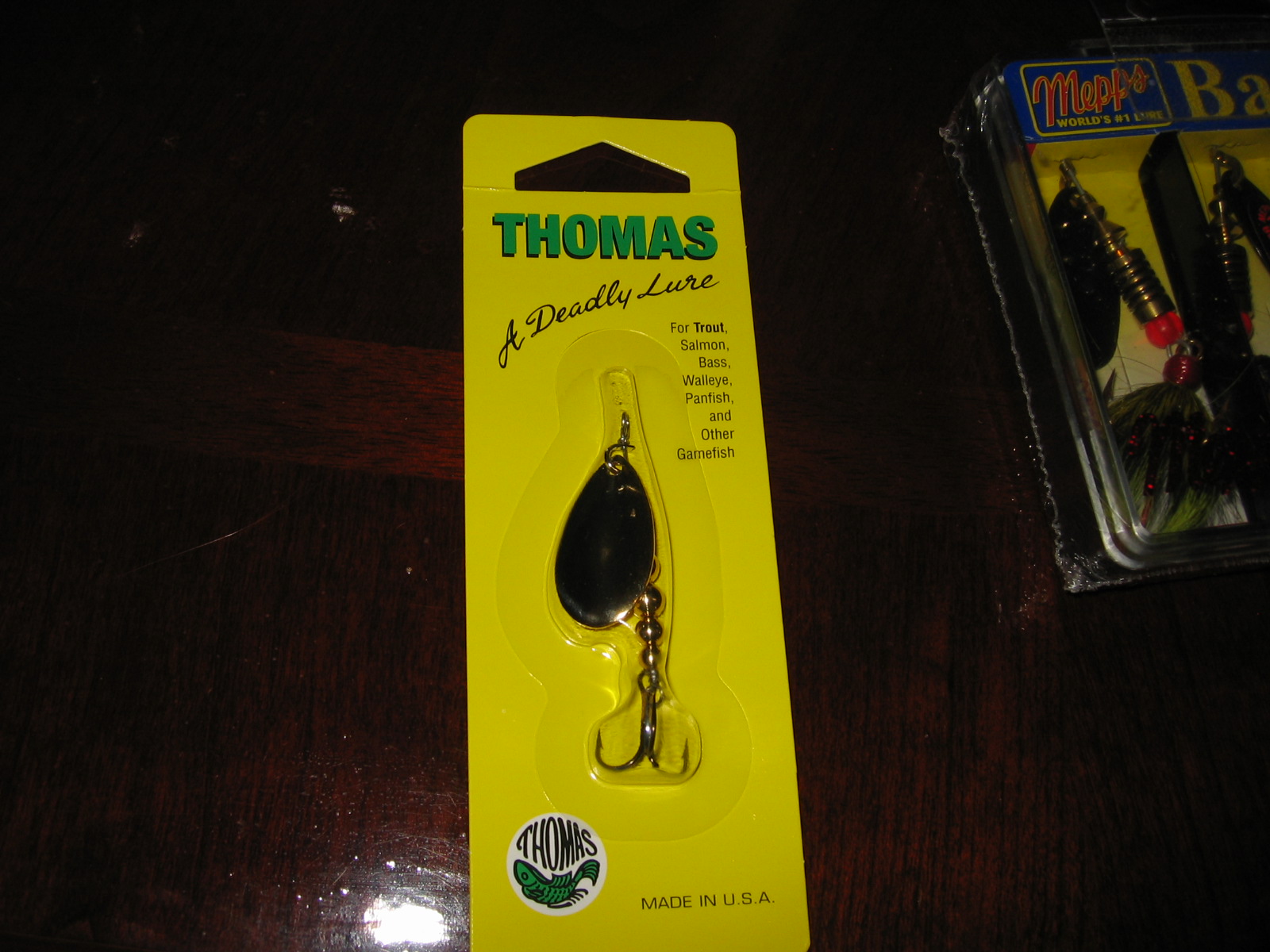 Решила и себе вертушечки подкупить. Много разных фирм, но после всего прочитанного решила брать только Mepps,- маленький наборчик в коробочке из 3-х штук, стоит у нас 15$, на самой блесне-лепестке с обратной стороны написано Made in France. Читала по рейтингу о них на basspro.com отзывы людей 5 баллов из 5-ти именно эти- Mepps Black Fury Испытать смогу только летом в Киеве, думаю на шучку. :) Есче одна вертушечка есть фирмы Thomas- наша отечественная USA, тоже летом буду испытывать, лепесток на ней если присмотреться на половину золотой и половину серебряный