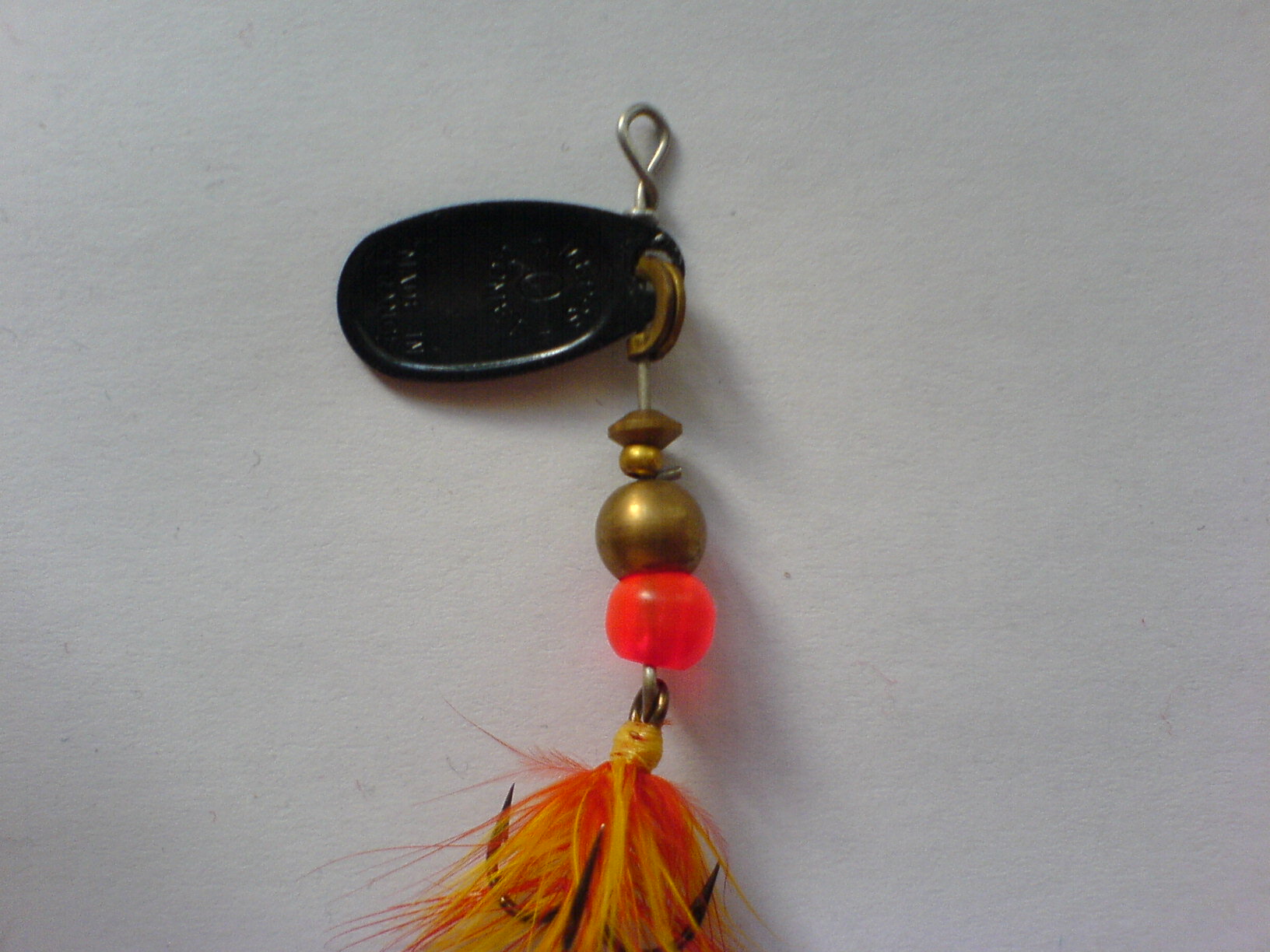 В результате визуального осмотра блесны (фото), предлагаю переделать монтаж, откусив стержень блесны, и собрать её заново на стержне из сталистой пружинной проволоки, диаметром 0,5 мм (если такая имеется), маленькую бусинку, что находится ниже отбойника можно вообще не ставить, а скрутку на проволоке в нижней части блесны сделать такую же, как и в верхней части. Отбойник и большие бусинки должны свободно крутиться вокруг своей оси на стержне (что вряд ли происходит с маленькой бусинкой не работающей блесны из-за конца проволочки нижней петли... которая блокирует свободное вращение бусинки. У меня была подобная проблема с покупной блесной, и мне удалось решить её именно таким образом... и теперь эта блесна "заводится" с половины оборота.:намана: