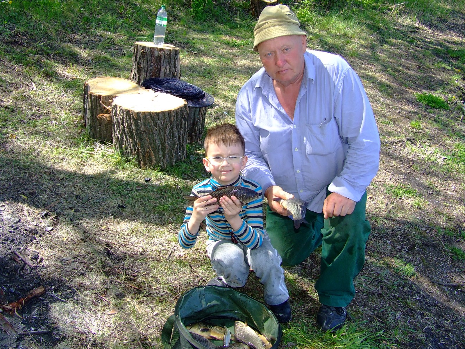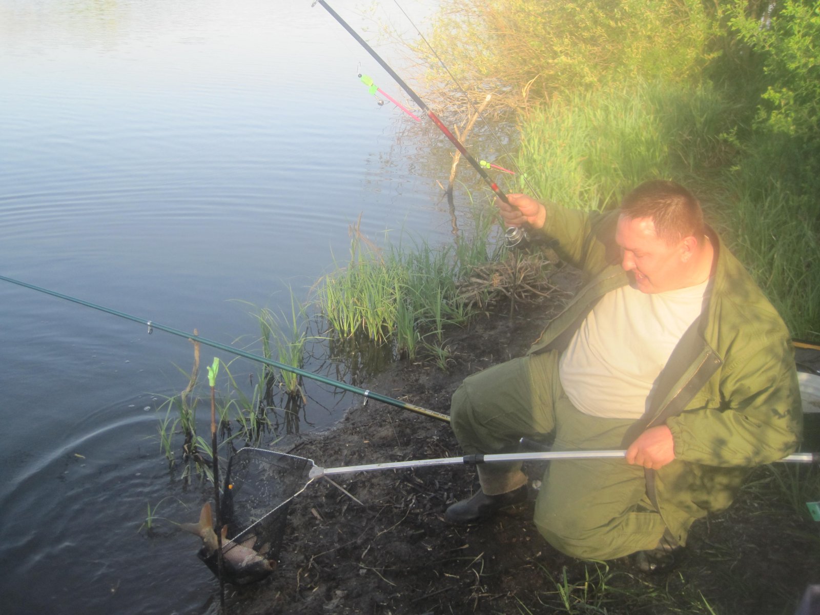 9 мая снова были в Затышном, причем в расширенном режиме (я с сыном, кум и Николаевич). Вечер начался слабенько, но на уху поймали каждый по карпику, за исключением сынули))). Рыбаков не много около 6 стоянок. Утром было поживее, на дальний заросбрал в основном метиз и исключительно на бутерброд из кукурузы и червя, на поплавки - карпик на перловку. Николаевичу докучали частые обрывы оснастки (сел в коряжнике), так что он не выдержал и пошел собирать все свои потери за утро))). Результат я 4 кг, кум с николаевичем около 14 кг))). Андрюха ушел вперед.