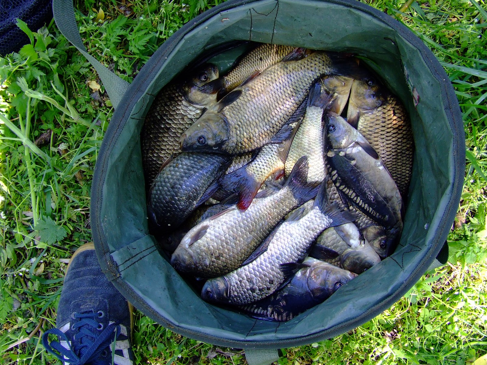 Вчера пятница открыл карповый сезон на Макитрах. 100гр день 150 сутки. Около 6.00 разложились попловок,пружины. IMG_1343.JPG IMG_1342.JPG Первым зароботал поплавок червь-был приятно удивлен мощным ершом,затем начались атаки лодошечной красноперки.Около 7.00 играясь со стаей голодных красноперых рыб услышал догжданный звон колокольчика и увидел стремительно покидающий свое место спининг. IMG_1344.JPG IMG_1345.JPG это был он-зеркальный карп 1.3кг. Следующая поклевка на пружину около 11.00-карась 300гр и все.В 12.00 спас соседскую удочку с карпом за двушку. IMG_1349.JPG IMG_1346.JPG IMG_1347.JPG IMG_1348.JPG
