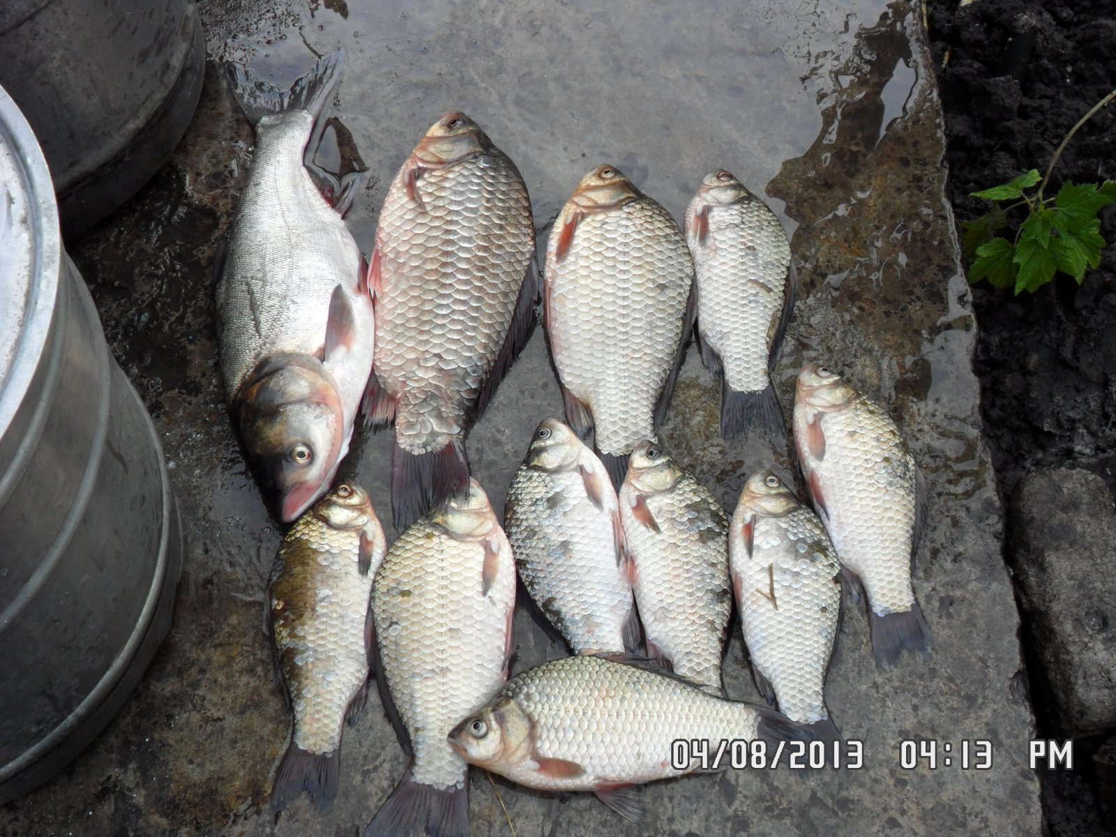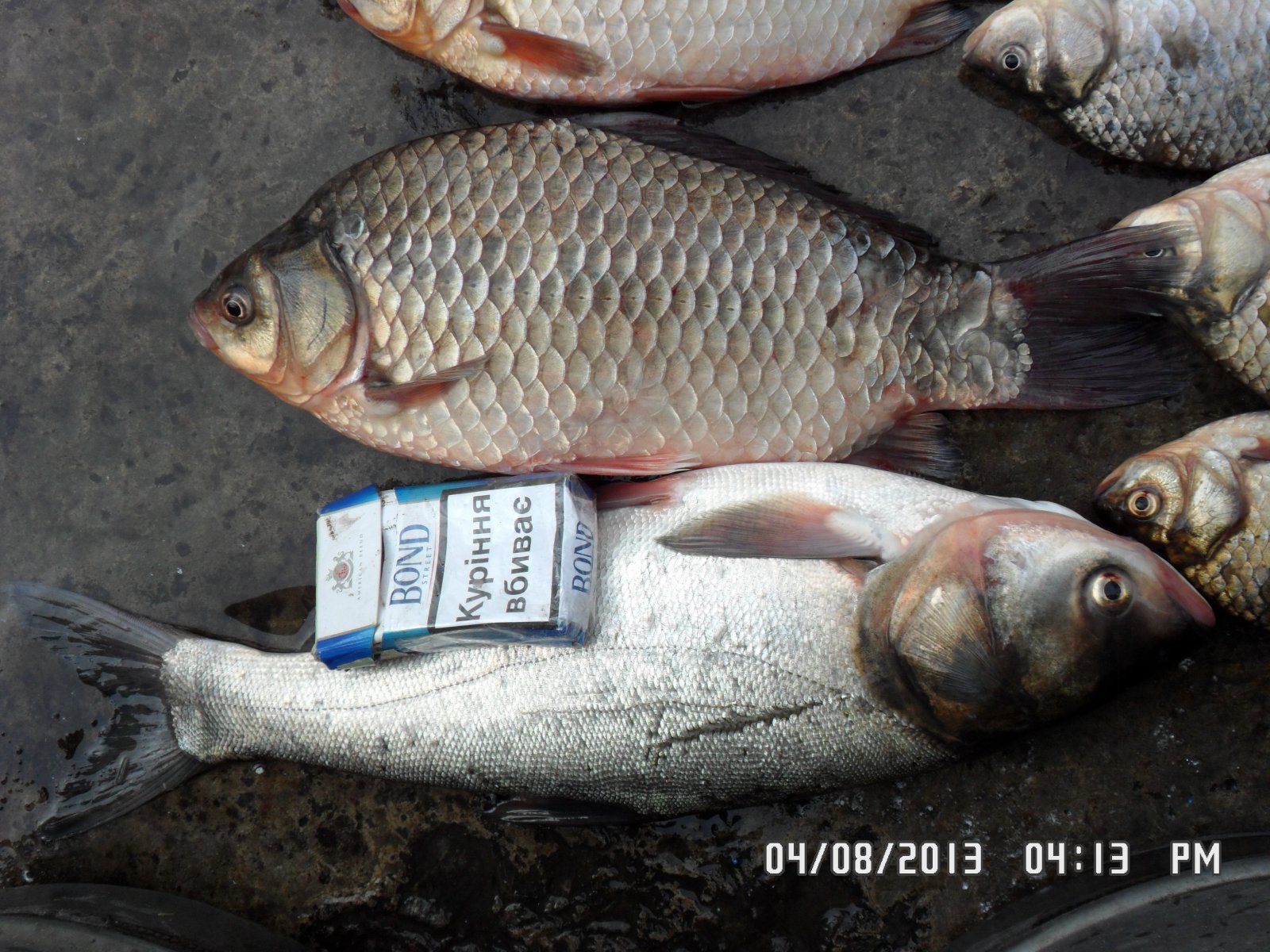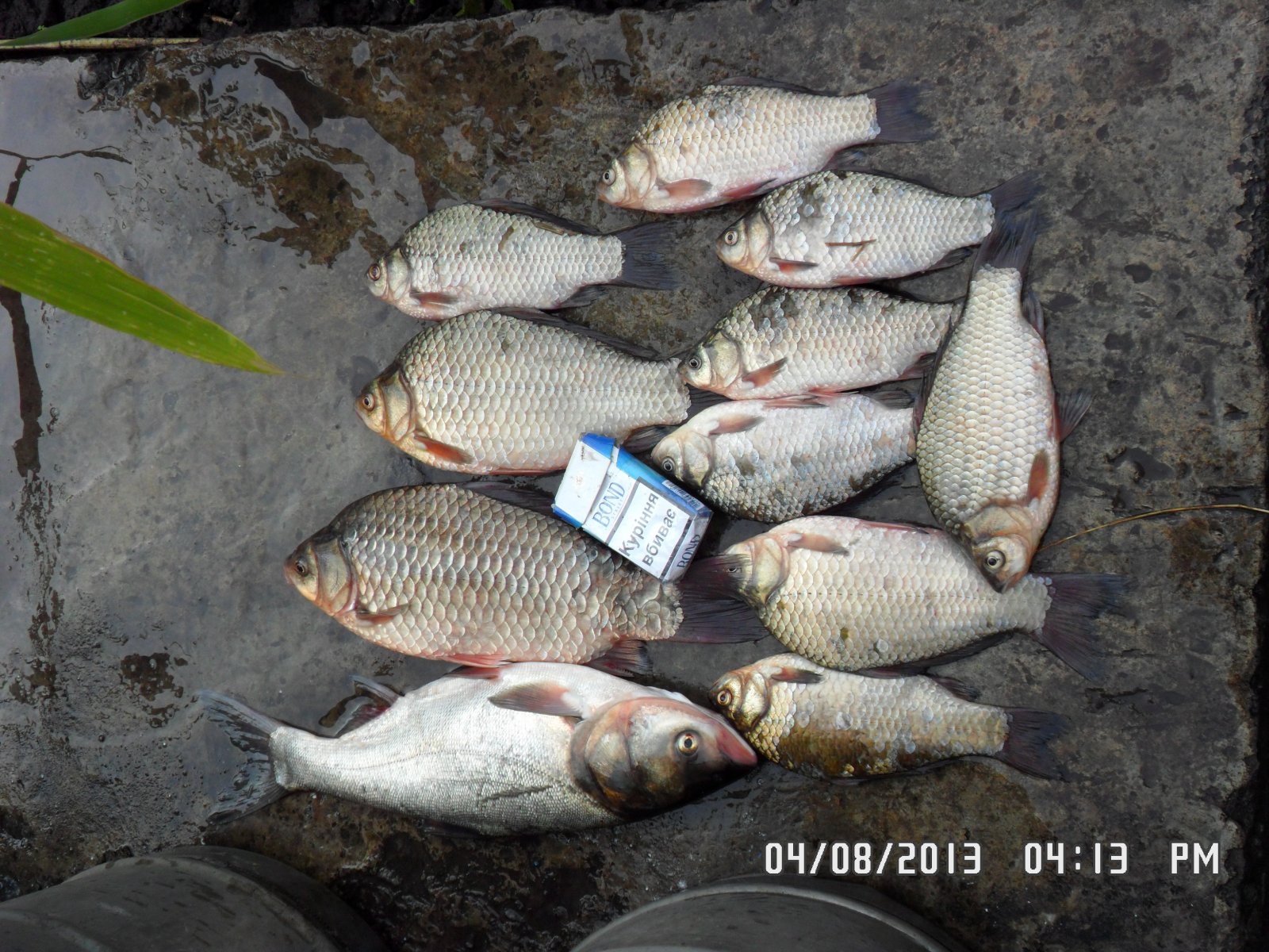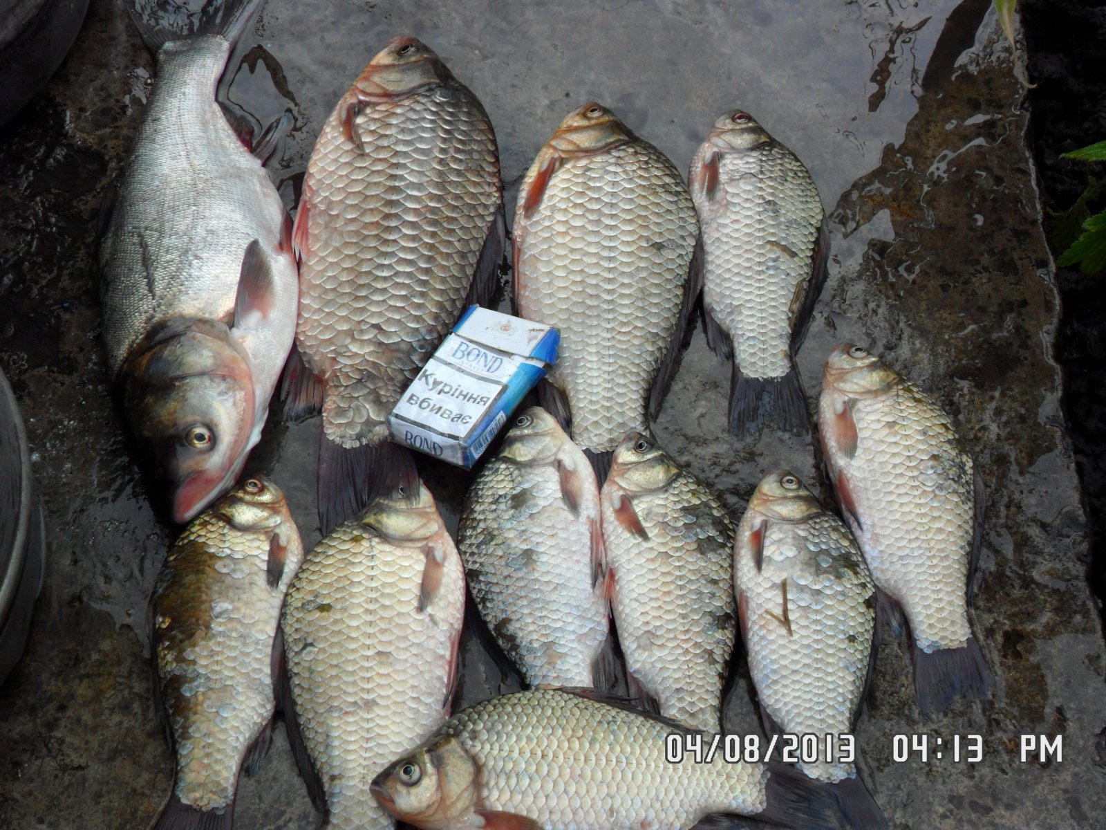 18.08.13. С 06:30 до 13:00. Макитры. 100 грн. Пружины с кукурузой. Очень много сходов. На фото мой улов. Лобатого забагрил за спинной плавник - адреналин лился со всех щелей :)