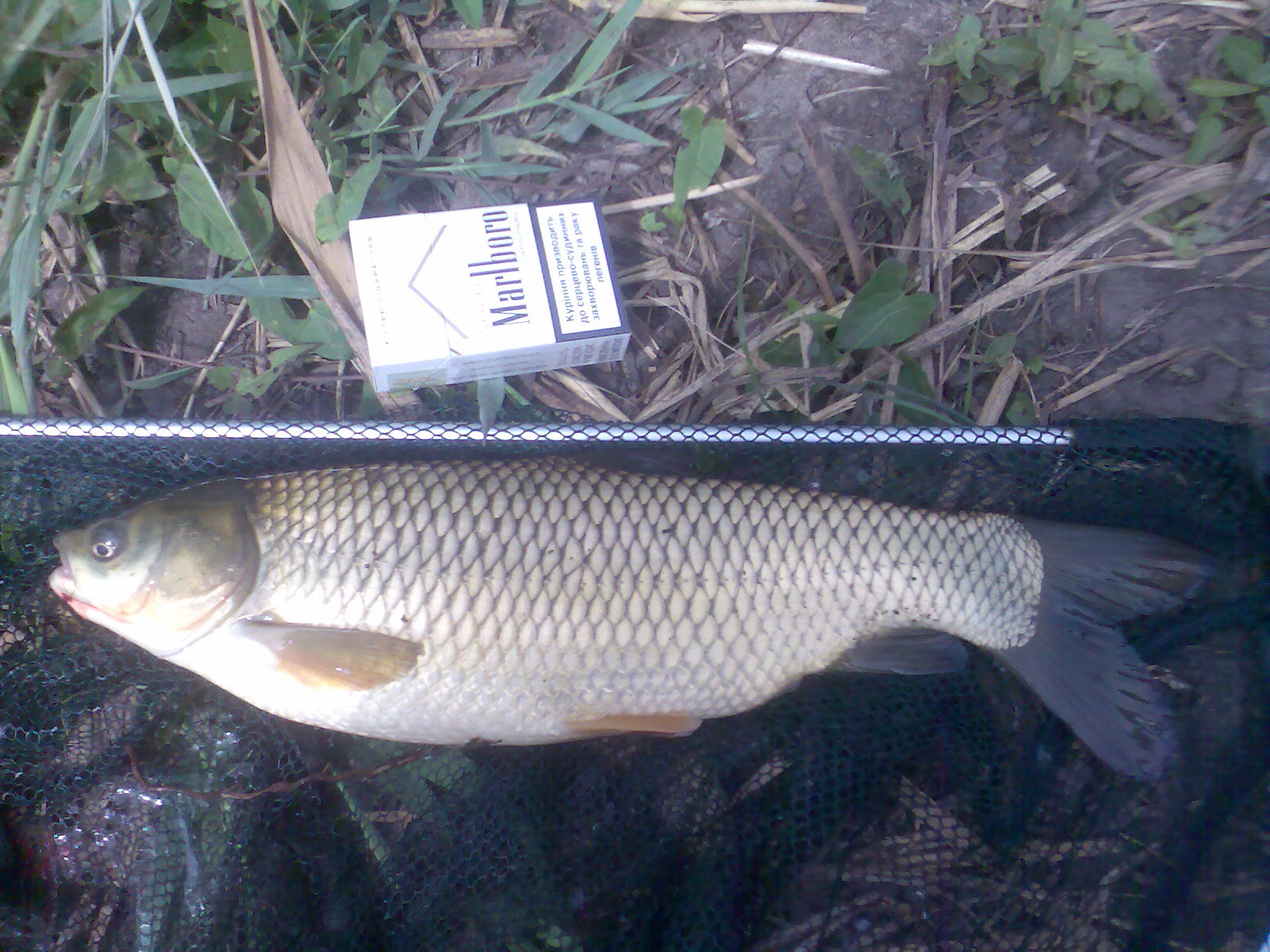 Варваровский ставок, в 4 утра на месте. На дамбе полно машин и в основном с ночи так, что яблоку негде упасть было. Решили с отцом ехать на старые места в очерет где уже 3 года неплохо ловили. Итак в 5 всё в сборе: пружины, макушатники; привада каша пшенная с паренной макухой, чесноком и пшеницей, с прикормкой Fishdream и новенькой прикормкой для карпа забыл название, пару ароматизаторов конопля, ваниль. Закармливание рогаткой шарами из каши, и коброй конопляных и сливовых бойлов. Пружины оборудованы поводками с глухой оснасткой на крючках пенопласт на волосе либо бойлы выше указанные либо кукуруза СUKK ваниль или анис ну и макушатники. Первым на крючке карпик 500гр. потом сразу же подлещик 300гр., кстати его развелось довольно много. Неплохие поклевки товарного карася не давали соскучится, был взят амур под кило, смелая и резвая поклевка карпа под кило, сход очень неплохого карпа (дуга работа фрикциона килограмма 3 точно) завел в камыш и отцепился:poplavok:. В 17:30 начали собираться, итог : 10 карасей, 3 подлещика, 4 карпа, 1 белый амур. Все мужики на дамбе говорят, что клёв стал хуже, и пока было прохладно клёв был стабильный.