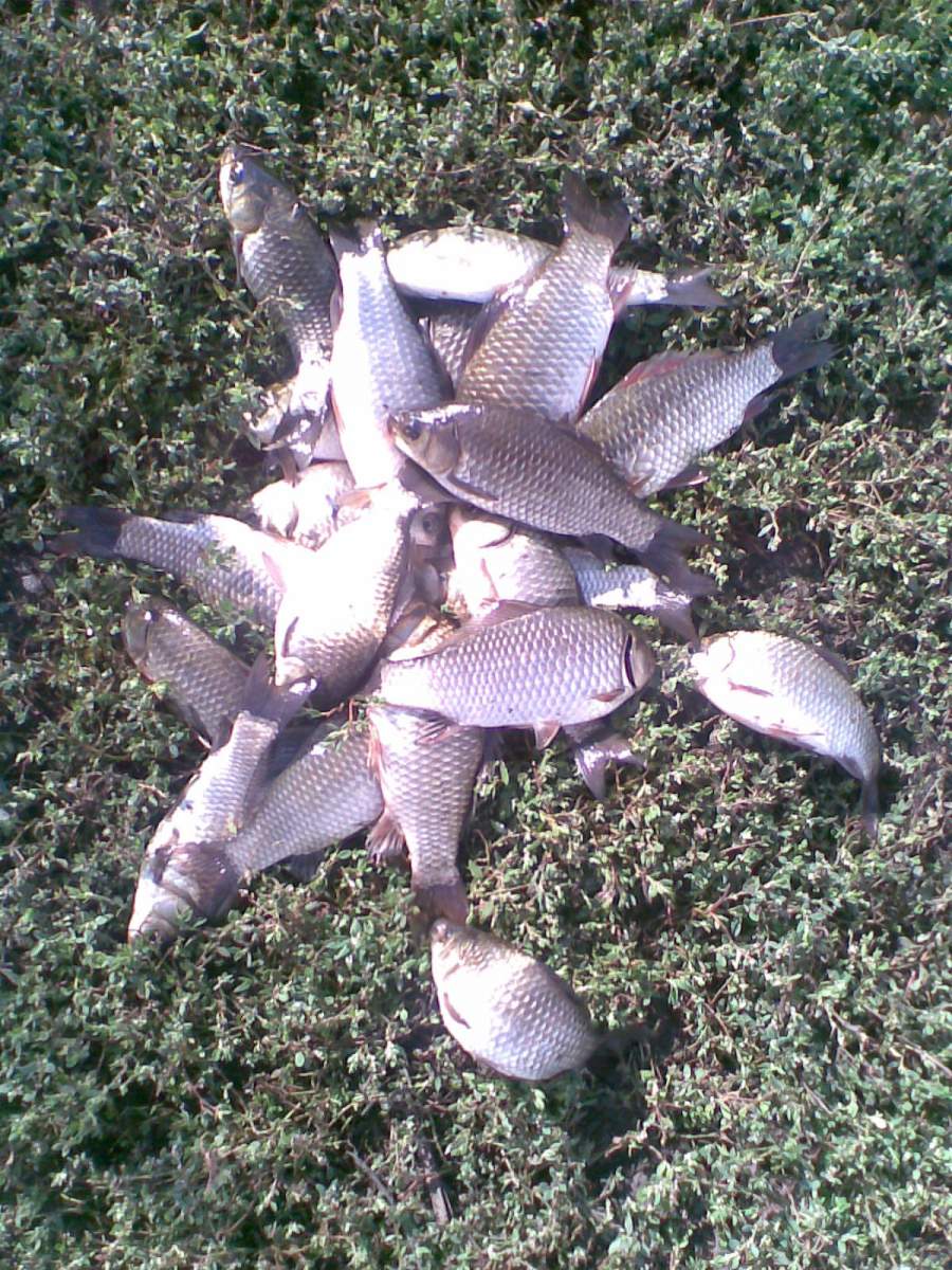 Результат рыбалки - не для ставка за 100 рубасов! С таким, а бывает и лучше результатом, можно возвратиться и с Самары. Чуть больше двух десятков карасей . Карась средней величины, один в один, грамм по 200. Коропчука не видел никто. Для интереса общался с соседями, результат одинаковый.