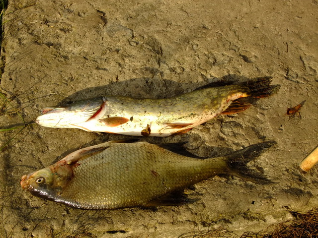 Зубастая взята на "попер", а лещ забагрен тяжёлым джигом на яме.