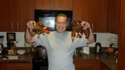 Вот решили попробовать новое для меня блюдо-лобстеры.С начала были *словлены*в китайском магазине без труда и лицензии.Затем доставлены на кухню домашнюю и приготовлены.Перед тем как отправить в кастрюльку-были опробованы клешни на прикус.Очень даже ничего-карандаш почти перекусан!!!!Скажу что особи по килу 700 не влезли в огромную кастрюлю сразу-пришлось варить по два.17 мин и готово!На вкус...ну очень даже ничего.Конечно все мясо в хвосте и клешнях но лапы под пивко пошли тоже ничего.Вот так-советую.Всем удачи!!!