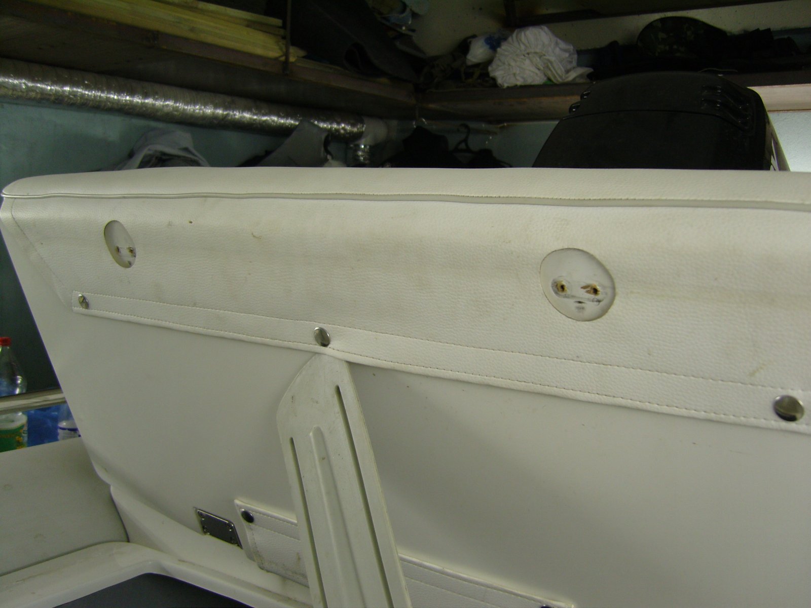 Смотрим конструкцию транца изнутри. Конструктор из фанеры и стеклопластика. Два болта - это нижнее крепление двигателя к транцу. Верхние болты находятся снаружи. Думаю не удивительно что трещины пошли. Кто что думает по этому поводу?