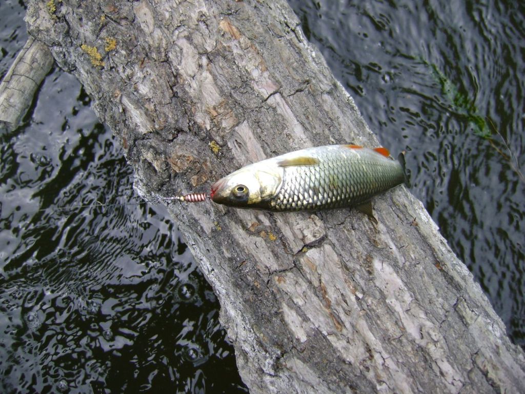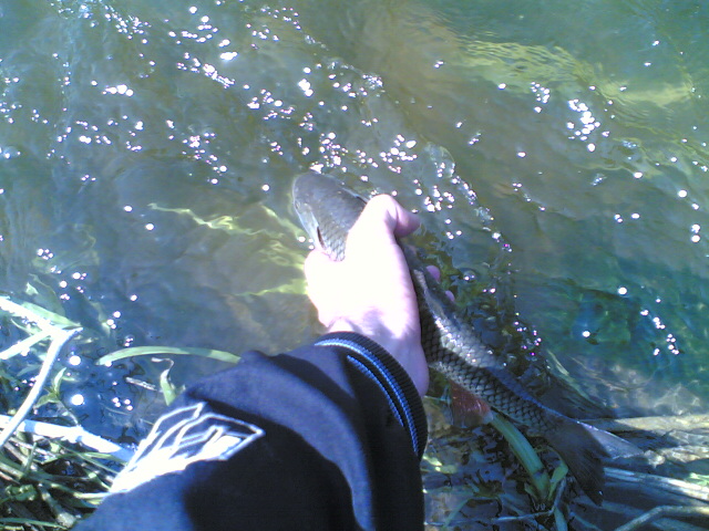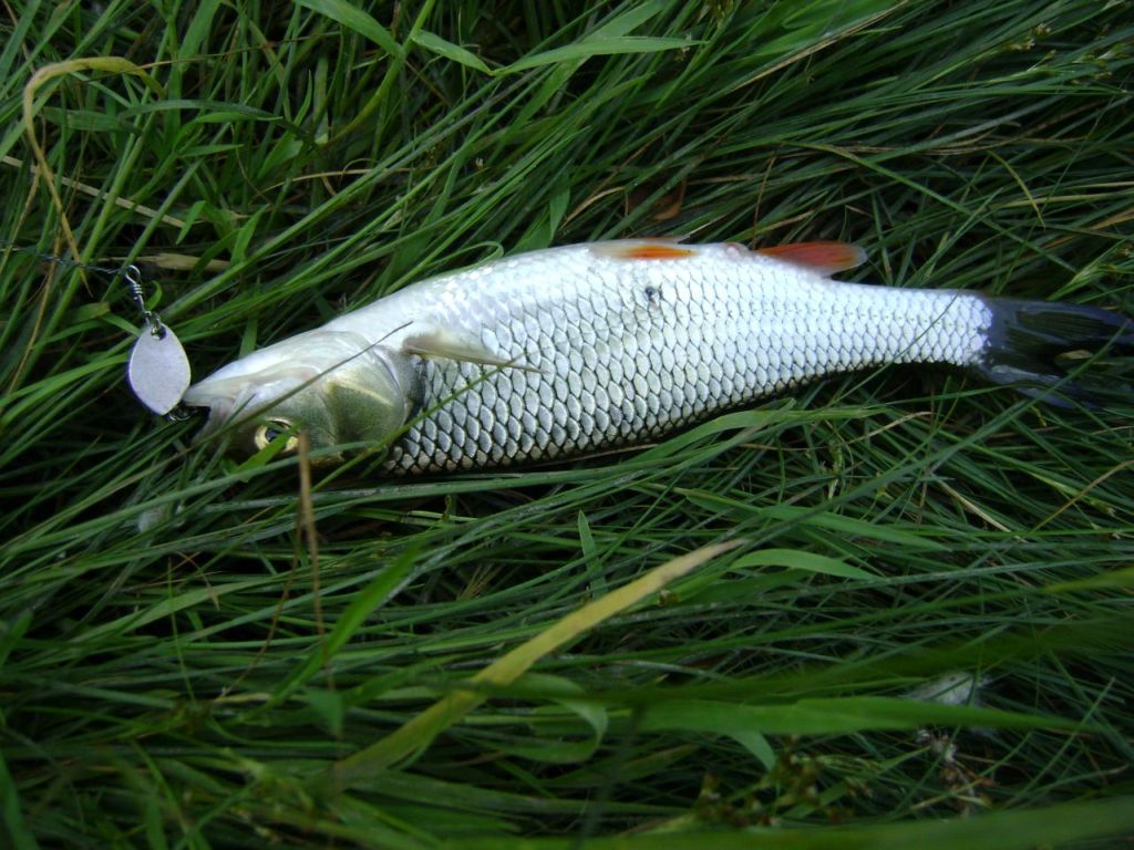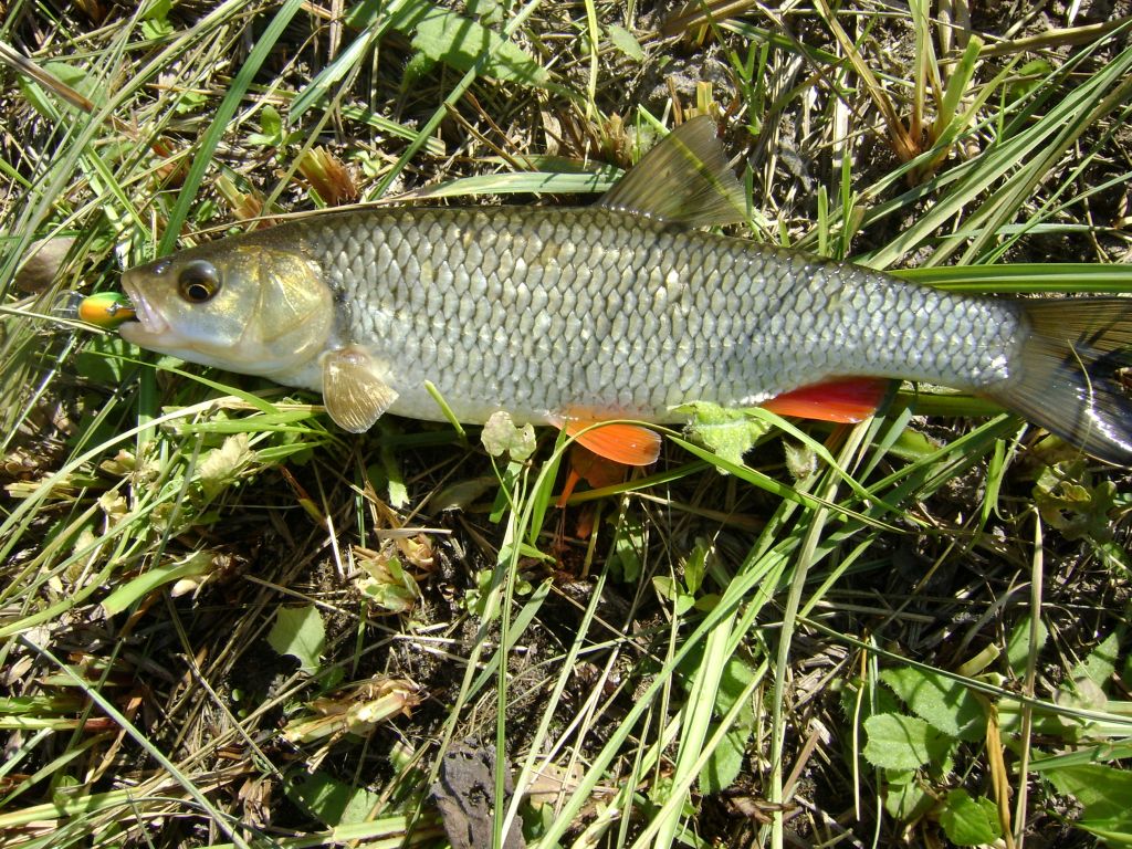 Сегодня в поиске голавлиных мест получилось до обеда порыбачить, места вроде и интересные, но кроме рыбьей мелочи ничего не увидел. В общем счете было изловленно около 5 верховодок и микроголавлик - все на один и тот же воблерок. Были тычки и агрессивные удары верховки, одна даже атаковала на плюх. Голавлиных злых клевак не было так пару выходов. Пробовал хорнетом копнуть поглубже , но увы ничего из этого не вышло :)