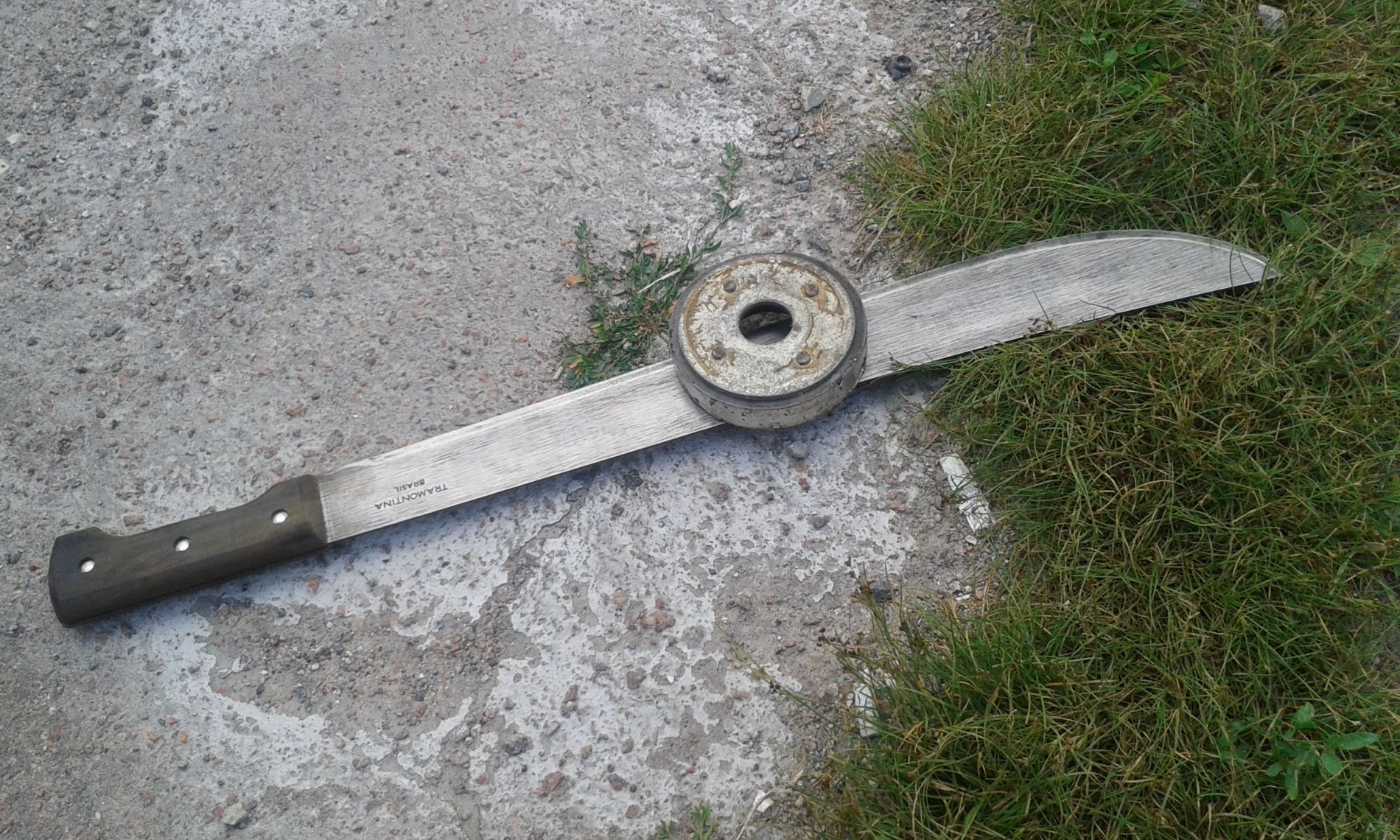 Начну с того, что 1 мая во время чистки места ловли утопил свое мачете. Попытки сразу найти успехом не увенчались да и вода была не очень теплая. В последующие приезды на рыбалку это место было занято. Поэтому поиск откладывался. Но я к нему подготовился, взяв с собой здоровенный магнит от динамика. И вот с 11.06 отпуск на берегу. Пошел на на то место, две минуты магнитом на веревке простучал дно и мачете спасено. Слегка за месяц почернело. При подготовке других мест ловли во время отпуска, был найден маленький металлический садок по центру водоема, куда падали кормушки. Поплыл освобождать зацеп. Под камышами найдена алюминиевая толстостенная кастрюля стенки 5 мм, ручки на заклепках уже отгнили. Может военного образца. Для населения таких толстостенных не встречал. Плюс куча крючков и поплавков на береговых камышах, это частое явление. Не сфоткал, но когда первый раз сразу искал мачете, еще 1 мая, нашел в корнях камышей маску подводного охотника Aurora в идеальном состоянии. При помощи ее тоже пытался найти мачете, но замерз и оставил все до теплых времен. Оказывается есть целое направление по поиску под водой при помощи мощных поисковых магнитов (неодиновых). Но очень опасное, много находок это гранаты снаряды бомбы. Ведь магниты используют с разрывной нагрузкой до 400 кг.