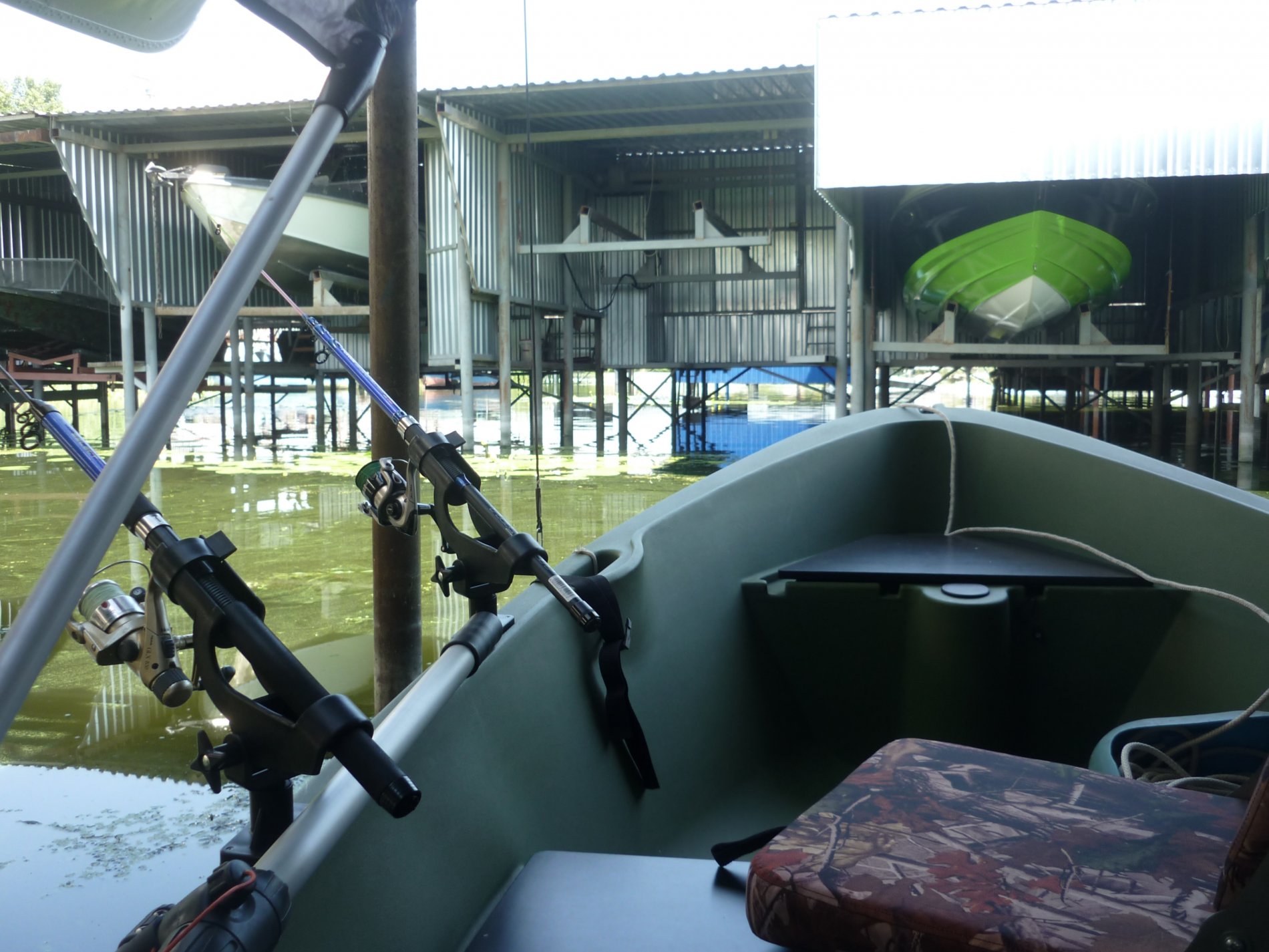 Всех приветствую! Сделал некоторые доработки исходя из опыта эксплуатации лодки на рыбалке. Перенёс держатели для спиннингов, так как оказалось что более удобна ловля с кормы. Изначально установил держатели для боковой ловли, но RKM-350 как поплавок, отыгрывает волну от проходящих катеров по-полной, рыбалка очень не комфортная. При кормовой установке проблема исчезла. Пытался ставить в жару зонт пляжный, но не понравилось.Самый лучший вариант штатный тент - и ловить удобно и устойчивый. По ходу лодки - самая экономичная скорость 8-10км\ч(1литр на 10.5км -пол газа)При скорости 12км\ч(1литр на 8.5км-2\3 газа), проверено много раз.