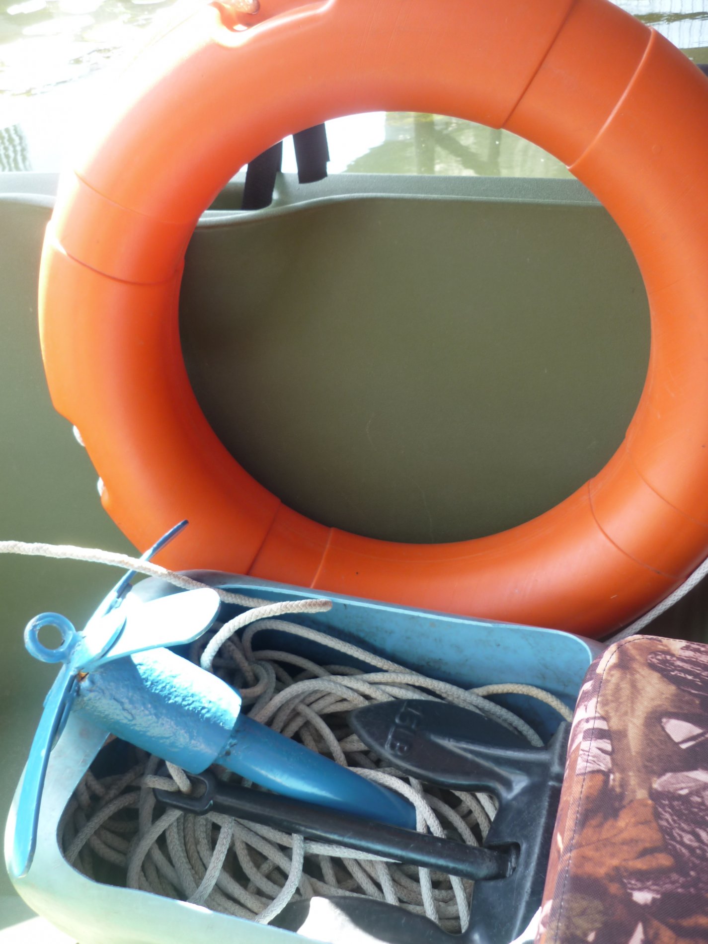 Когда рыбачу на малых реках и озёрах, то вяжусь как удобно - ведь у лодки имеется 4 встроенных ручки и в корме рым болт. Поэтому, коллеги, кто эксплуатирует лодку на больших реках и водохранилищах примите это к сведению, ведь правильное якорение залог вашей безопасности.