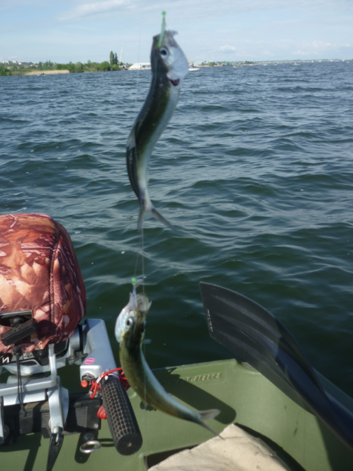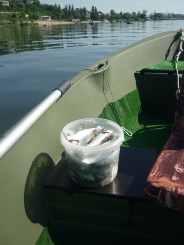 Всех приветствую! Продолжаем эксплуатацию лодки RKM - 350, пошёл 6 год. Особенностью климата в Херсоне является то, что лодкой пользуюсь круглый год. За всё это время у лодки, которая висит на подвеске на лодочном причале вместе с лодочным мотором никаких изменений не произошло - крепкий 2-х слойный полиэтиленовый корпус является главным достоинством лодки. Цвет лодки вообще не изменился, а благодаря полипропиленовому покрытию пола уход за лодкой минимальный. Практически весь май и июнь рыбалка на зашедшего в Днепр на нерест пузанка, условия были разные - большая волна, дождь, высокая температура, всё без проблем. Благодаря штатному тенту от солнца ( и не большого дождя ) рыбалка становится комфортной. Несколько фото из личного архива.