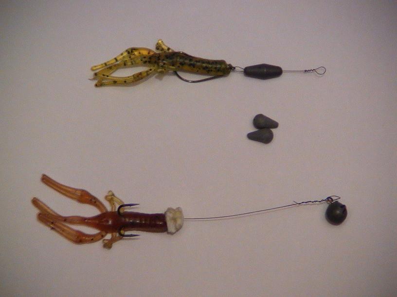///.. вставлю и свои 5 копеек.. Цеплял на обычную джигголовку, только подпиливал немножко груз, чтобы оно было плоским с низу, в результате при проводке рачок стайот в стойку под углом в 45 градусов, какбы обороняясь. (рачок Юм, внутри пустотелый)