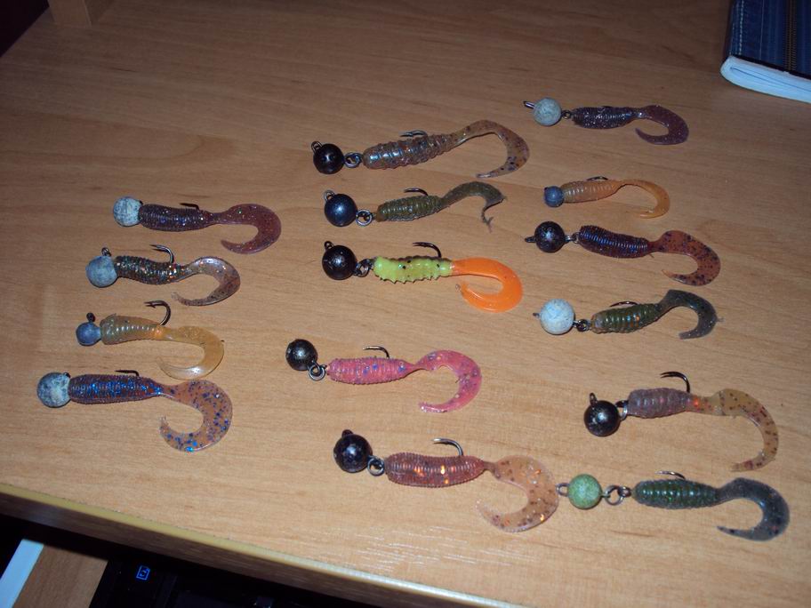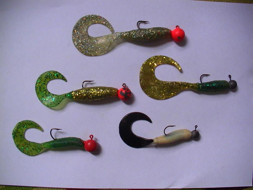 Хотел еще сказать о силиконе, но не про раков. А про твистеров. При покупке твистеров (см. фото) я думал что им надо будет подрезать хвост, но когда я их помочил в воде-то я понял что это была плохая мысль. Потому что игра у них размашистая и вялая, можно сказать: « то что надо». Фирма силикона Релакс.
