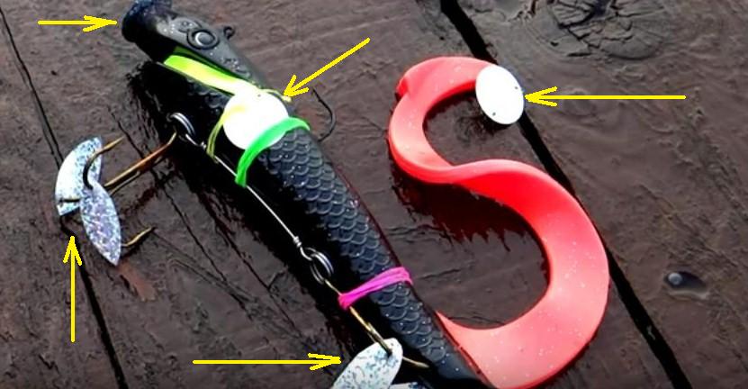 Но кое что не понял, зачем на резину прикрепляют пятак на нос резиновых рыбок?? игра же ? или чем безобразней-хаотичней приманка ведёт себя в воде тем лучше для щуки?
