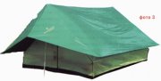 Двускатная палатка (фото 3) имеет классическую, хорошо знакомую нам форму. Ее каркас состоит всего лишь из нескольких прямых трубок, поддерживающих конек палатки. Натяжение самой палатки и тента, если тот существует, осуществляется с помощью множества оттяжек, требующих воткнутых в грунт колышков (крючков).