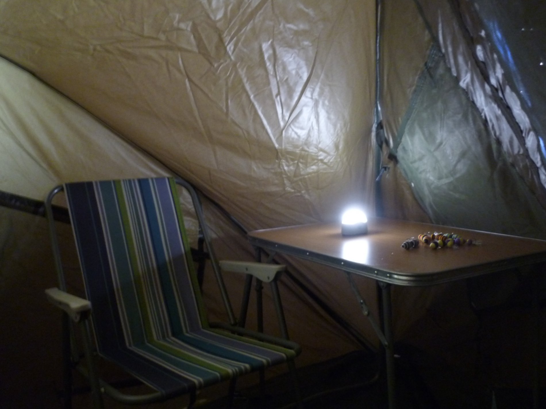 Сегодня прошёл тренаж по сборке - разборке палатки и установки раскладушки, стола,стула. Лучше сейчас всё расставить по своим местам, что бы потом было проще. Раскладушку установил под заднюю левую стенку палатки. Под правую переднюю стенку вошёл стол, ну а стул можно двигать куда хочешь. Как я и планировал всё вместилось, есть место для свободного прохода и вещей. За счёт 5 открытых окон(москитные сетки) освещённость в палатке отличная. В ночное время будет светить кемпинговый фонарь. Так как палатка стоит в комнате без растяжки и колышков, то реально размеры внутри будут ещё больше, но это будет видно уже на рыбалке. Общий вес - палатка, раскладушка, стол,стул получился 15 кг.
