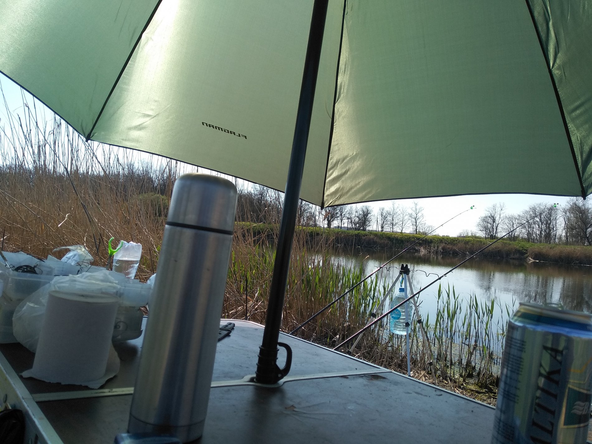 Пляжный зонт и стул-паук. Может еще низ обшить тонким брезентом, но это перспектива.