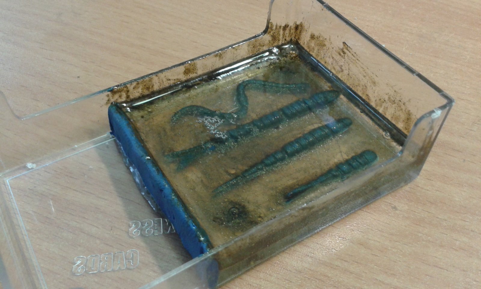 Добавил фото моей попытки сделать силиконовые приманки в форме с эпоксидной смолы.
