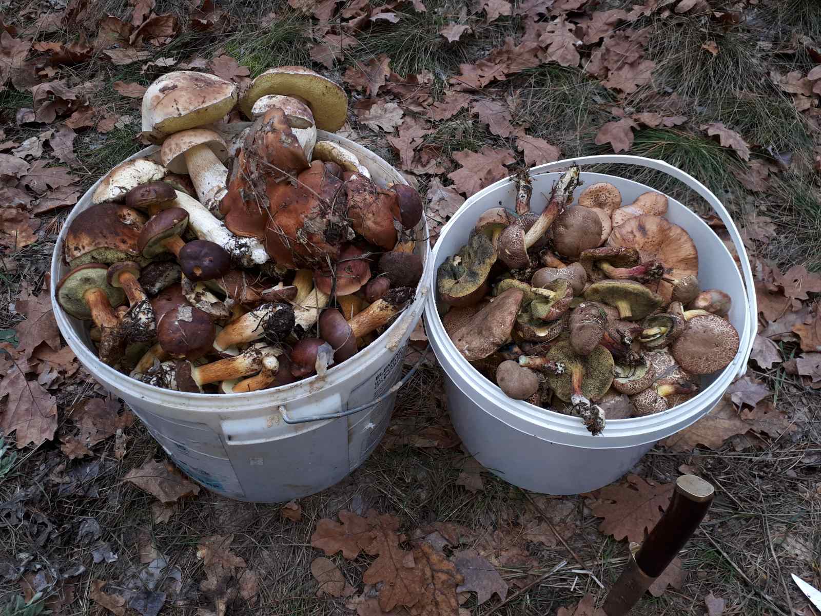 25 ноября. До этого были заморозки и лежал снег. Поехали просто проветрится. Побродив пару часов, почти ничего не нашли. Потом пошли по верхам бугров, а они там есть. Поднялись ближе к солнцу. В основном польские. Но попал на полянку черных груздей. Также немного опят и сыроежек.