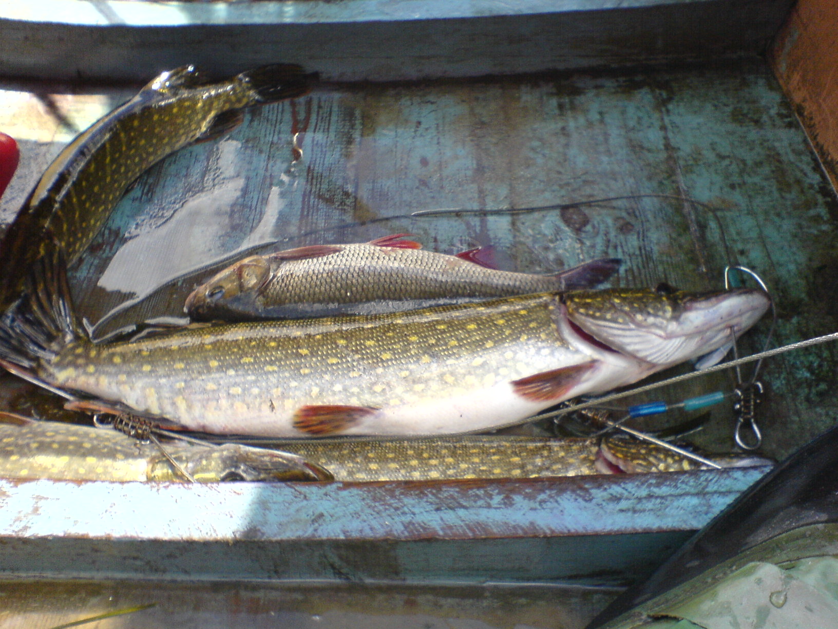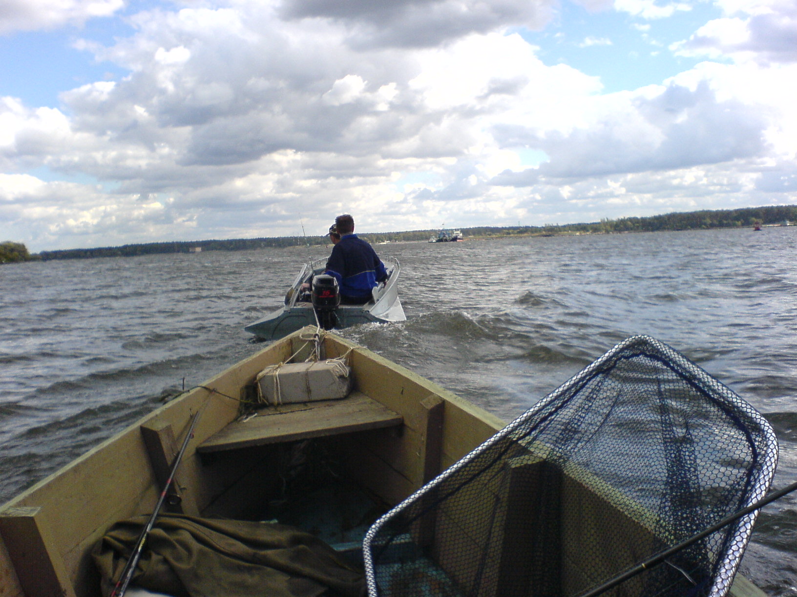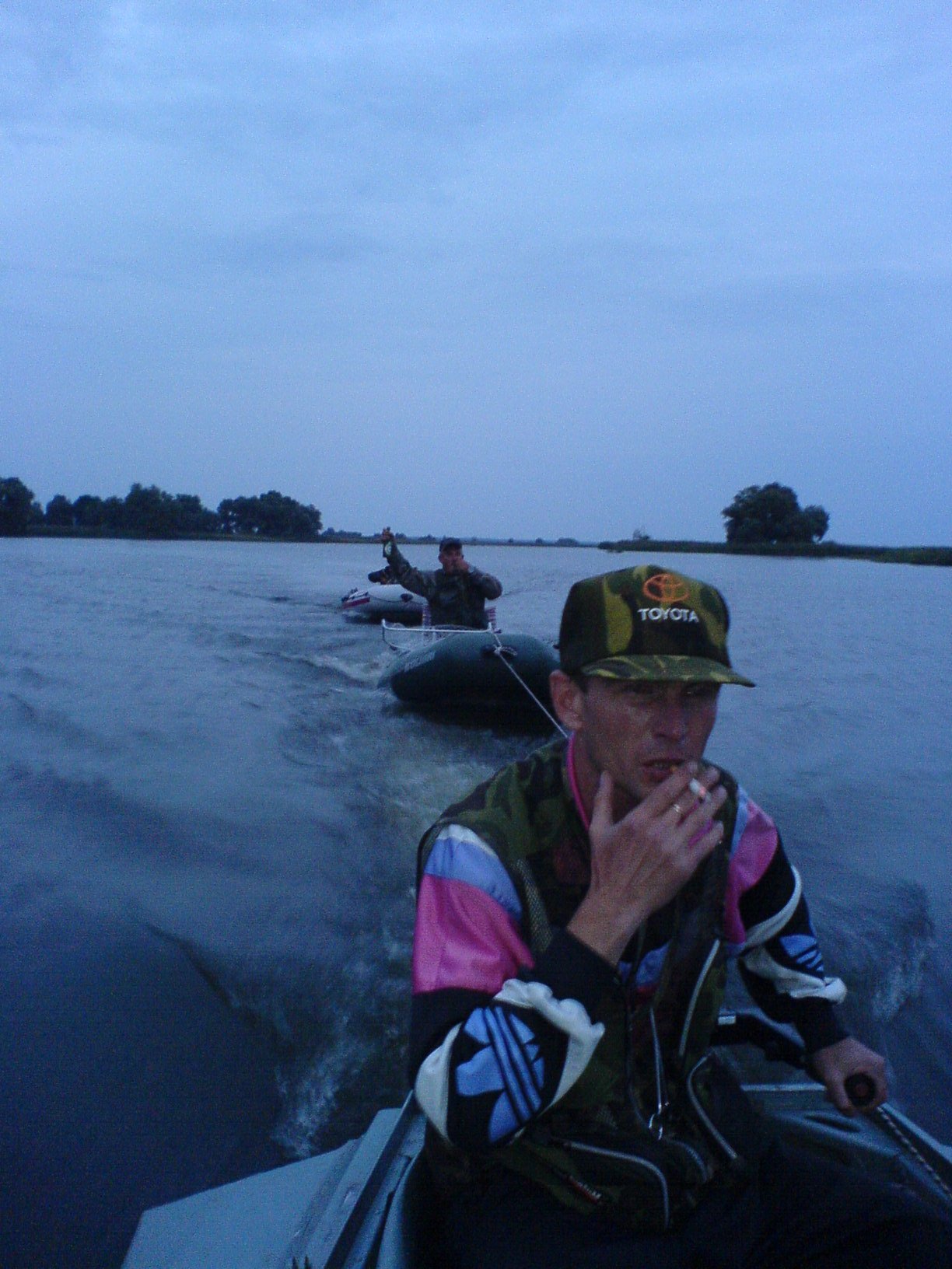 Вот немного фоток с той рыбалки, первая ваш покорный слуга, вторая - мой напарник, третья и четвертая это способ перемещения на 1 мотор - 3 лодки. Ну пятая понятно.