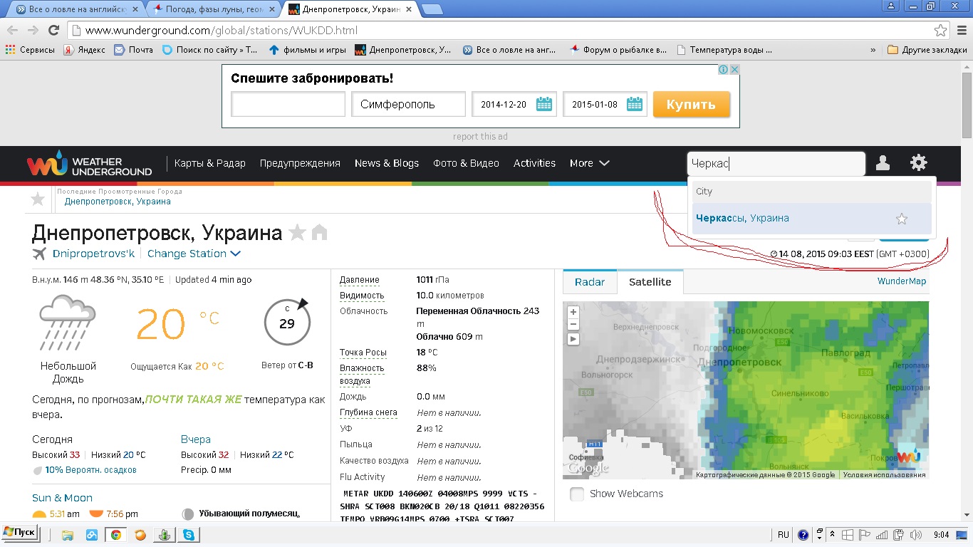 Еще раз попрошу, а то вроде писали что устранили, а у меня Открывается сразу Киев и прыгает на верх когда переключаешь дни. С утра был дождь, а на сайте без намеков на это. Гисметео, синоптик и РП5 вроде правильно показывают.