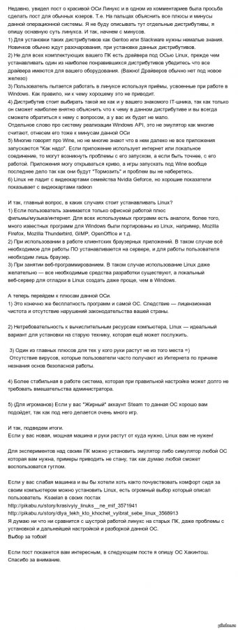 "Основные же недостатки Linux связаны с ее низкой популярностью. Это и отсутствие многих драйверов, некоторых кодеков для видео, и невозможность поддержки современных игр."