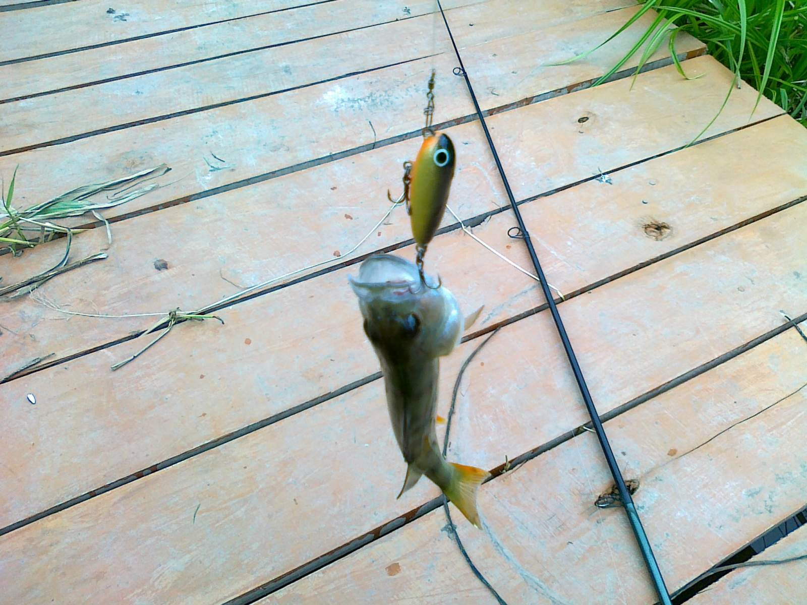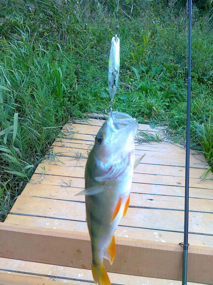 Сегодня заскочил ненадолго на одно заросшее лесное озеро (из всего разнообразия приманок имело смысл использовать лишь волкер, достал Ужгородский стик - на него и стал ловить:kvock:) Основной прицел был на окуня, поэтому ловил на его меньшую модель без поводка и агресивной "ёлочкой" с остановками через 3-4 рывка.. Заработал два зрелищных выхода и один "трофей:D" который в последствии был отпущен подрастать..:wo_kakaya: