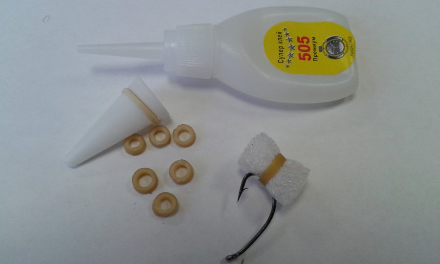 Все пользуются 505 клеем. Долго я смотрел куда можно применить пустые баночки. Кроме прямого предназначения, сделать масленки для дипов. И вот еще одно применение. Конусная крышечка очень хорошо подходит для натягивания резиночки на насадку. Это может быть пелетс, кубик макухи до 14 мм. бобовые. Конус можно укоротить для меньшего диаметра, или сделать четыре надреза как в патроне для сверла.