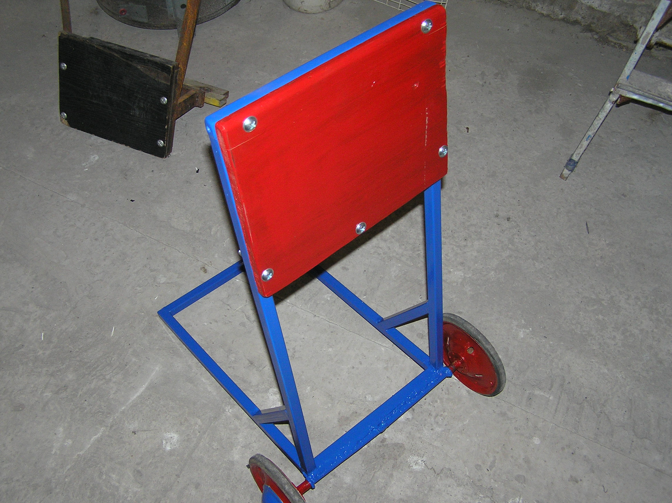 Как то стал подзатихать сезон выездов на лодке и в голову лезут разные мысли, что бы сделать что то полезное. И вот в поле зрения попадается в домашнем барахле ось с двумя колёсами от какой то тележки или коляски, не знаю. Муза осенила сразу: сделать тележку для лодочного мотора. Исходя из моих потребностей что я не часто переношу мотор но приходится ещё перевозить в машине и как то крепить – план возник сразу. Купил 4 метра квадрата, сварил рамку, приварил ось колёсную , погрунтовал , покрасил и навесил колёса. Из б/у подоконника вырезал под размер внутрь-наружа опорную панель , покрасил её и прикрепил . Перевозить мотор к автомобилю и наоборот конечно намного лучше, чем спину подрывать: навесил, прикрепил, взял за ручку мотора и покатил. В автомобиле, благо места много, ставлю тележку с мотором к стенке, раскрепляю её двумя трубками к стене и готово. Вот такой вот получился девайс. Провёл первоначальные испытания – четыре дня возил мотор и никаких сдвигов в этой конструкции нет, крепёж оказался жёстким, ну и слава богу.
