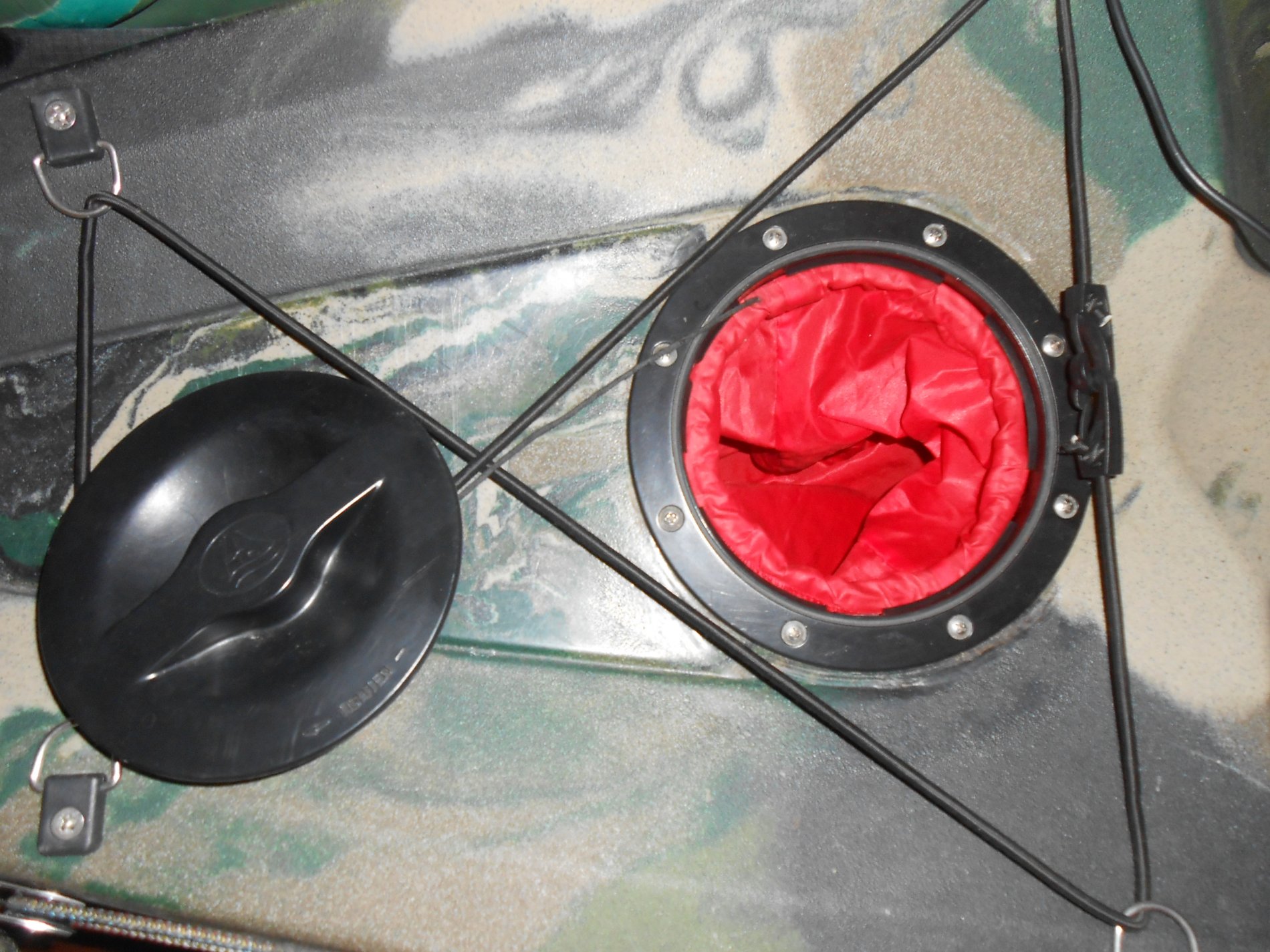 Успехов! Саморезы вместо винтов с гайками (как на центральном люке) поставил потому, что они шли в комплекте, и пластик на носовой деке каяка довольно плотный и толстый, и их легче и проще завинчивать, тогда как пластик для люка возле сидения очень тоненький, и для дополнительной жесткости пришлось еще поставить кольцо из винипласта под люк изнутри каяка.