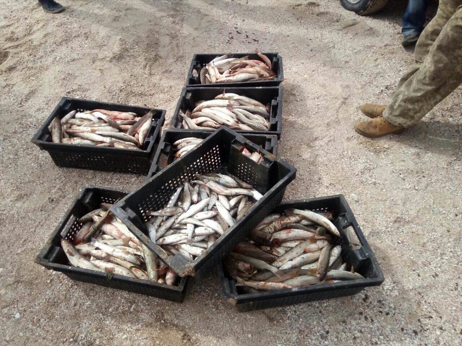 Воспользовавшись экологической ситуацией в Молочном лимане косы Пересыпь пгт Кириловка около 21 : 00 этого же дня и увидев большое скопление молоди, за дело взялись браконьеры — Ковальский А.О. и Третьяк Ю.Н., которые стали вылавливать рыбу всеми подручными средствами. Однако, правонарушителям с пойманной рыбой скрыться не удалось, благодаря совместной и оперативной работе сотрудников Азоврыбоохраны, пограничной службы, экологической инспекции и Национальной полиции. В процессе задержания и подсчёта молоди, было выловлено пелингаса — 640 шт., кефаль — 295 шт., лобань — 1 шт.. Вес рыбы составил более 300 кг.. Ущерб, который нанесли браконьеры составил 1 140 160 грн.. На правонарушителей было составлено два протокола по ст. 85 части 4 Кодекса Украины об Административных правонарушениях инспектором экологической инспекции Черным А.О..