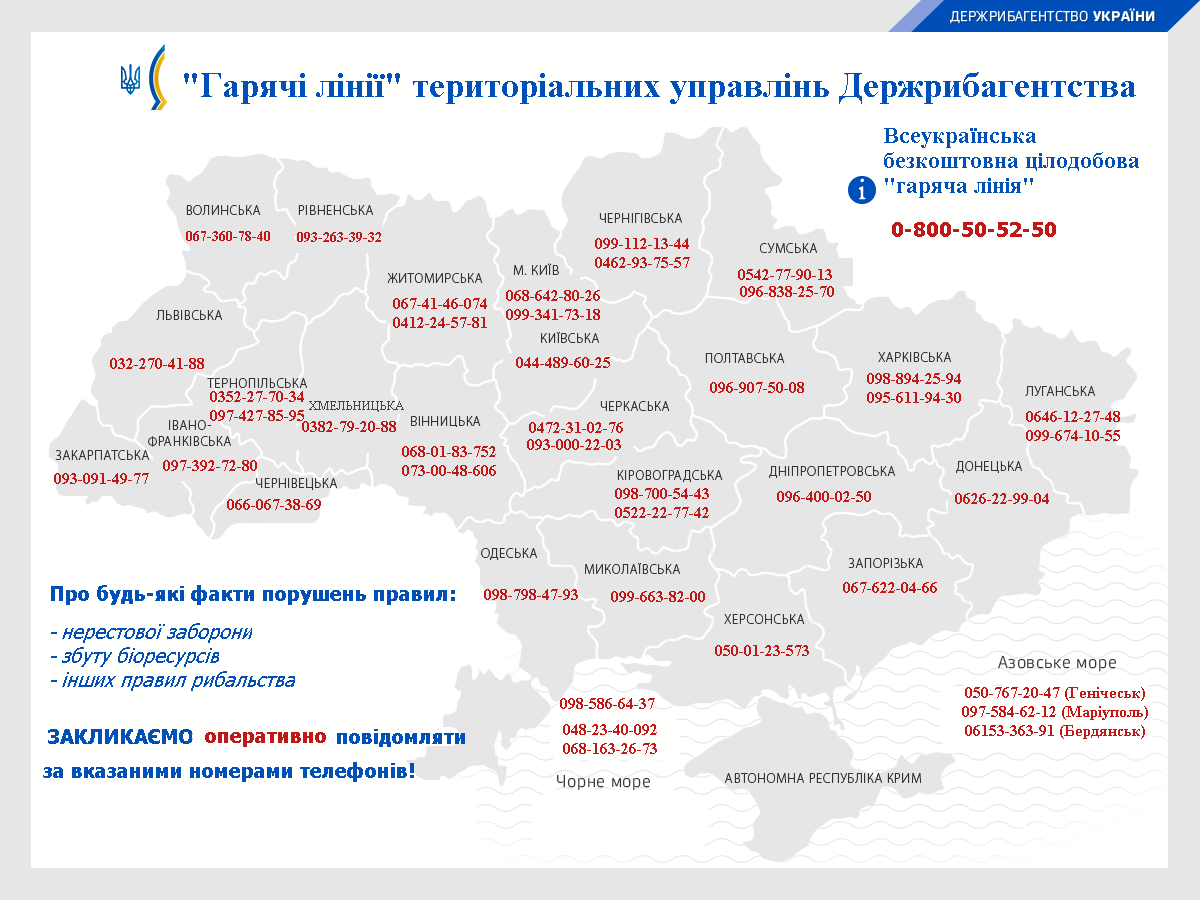 Інформація, нанесена на карти, регламентується наказами Держрибагентства у вищезазначених областях, Правилами промислового рибальства (п.9.6, п.9.9) та Правилами любительського і спортивного рибальства (п.4.13).