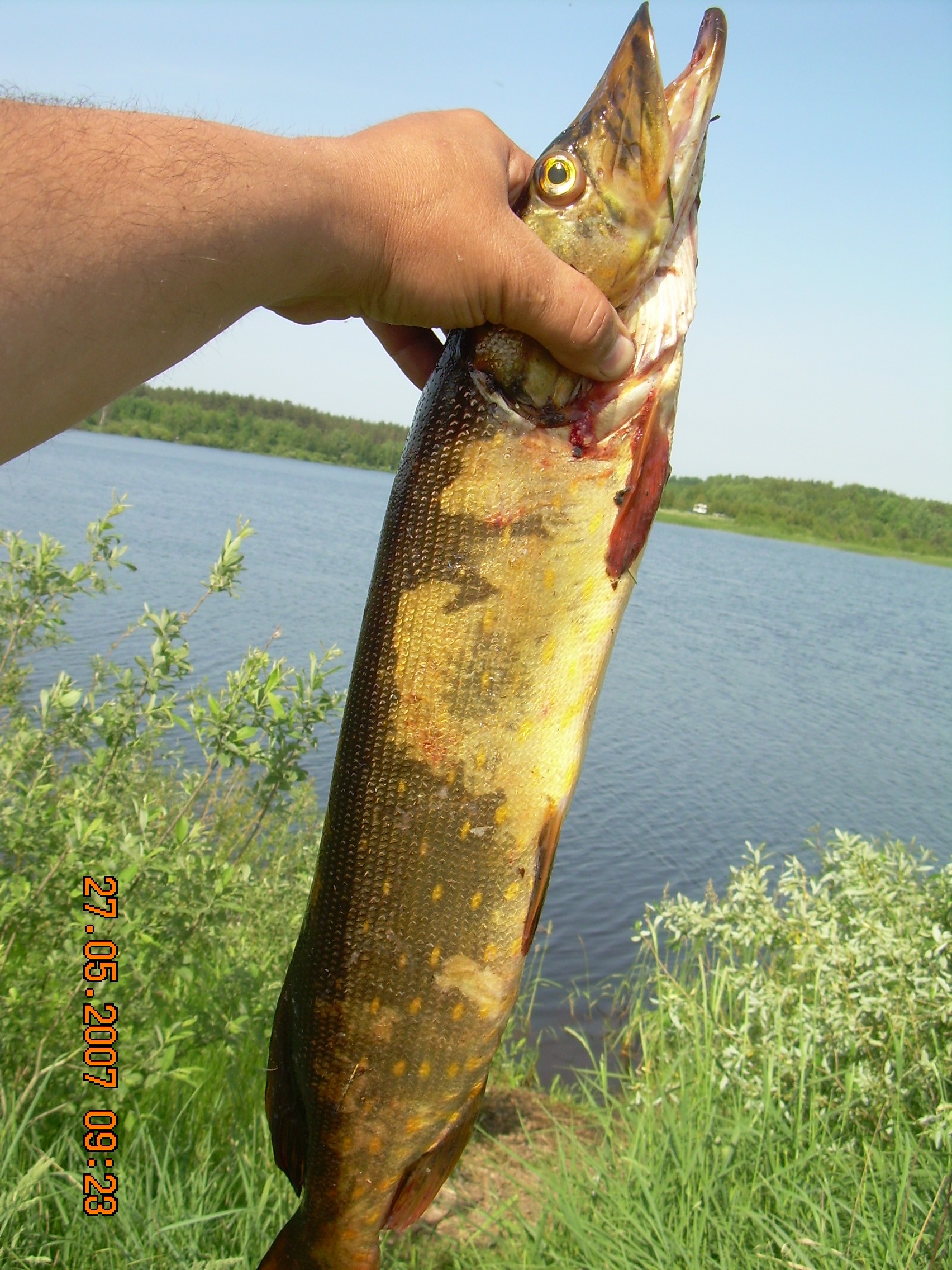 Что самое прикольное в этом ставке часть щучки пятнистые как коровы –на фото. Местные говорят, что здесь есть 3 вида щуки: Черная, зеленая и золотая. Я им говорю - у нас всего один вид, а у них действительно веский аргумент – нерестится в разное время сначала Черная, через 2 недели зеленая и аж через месяц золотистая.