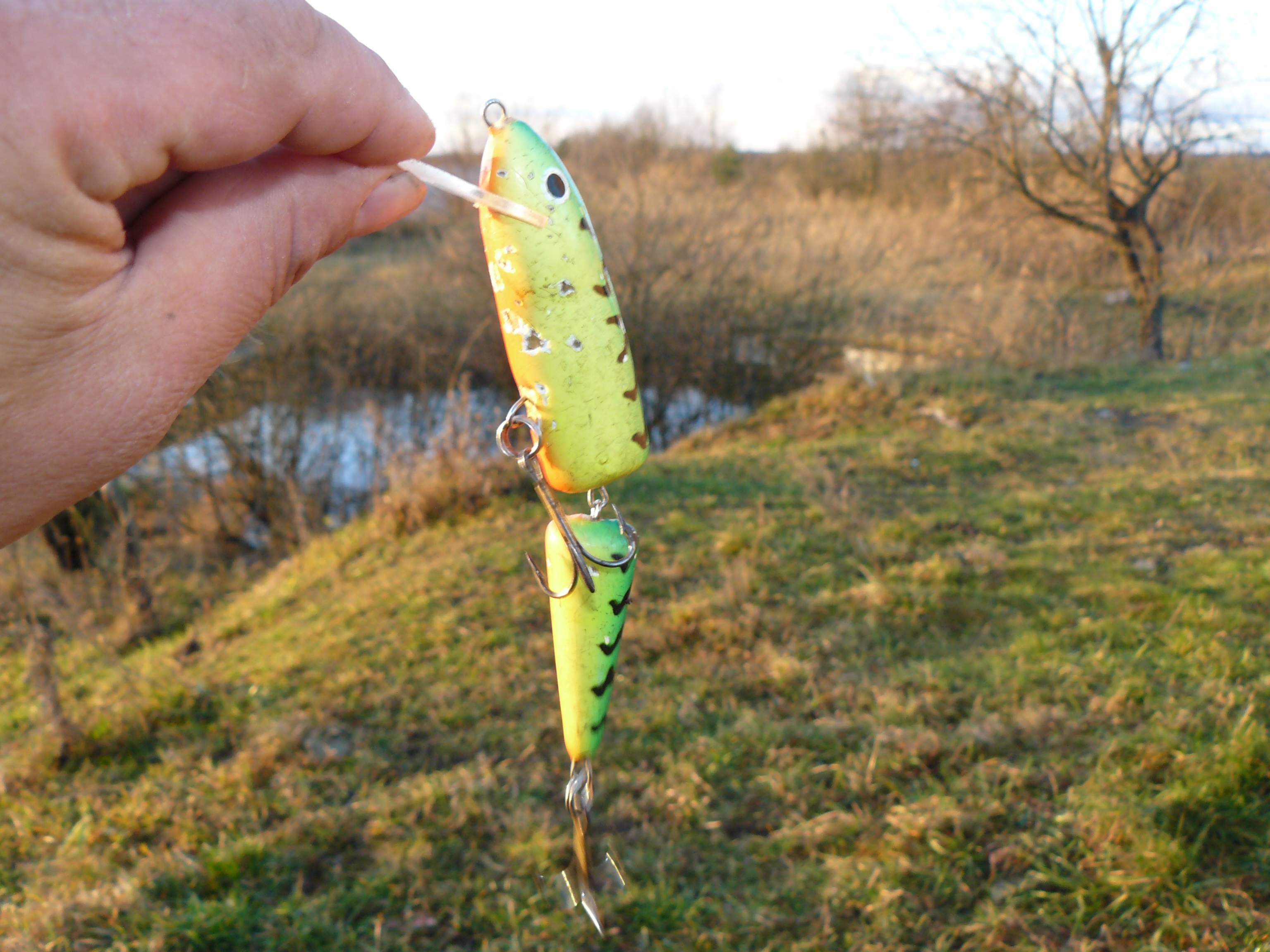Слідуючий круг тролінгування дуже сильний удар 30 секунд бородьби і новий воблер залишився щучі на пам"ять , перекусила нитку 0,2 і до нитки був поводок 20 см. Наступна щука спокусилася на Сальмовську щучку двійну 15 см. і на цей день Сальмо був фаворитом зловивщи 5 щук вагою 2 \ 2,5 \ 3 \ 3\ 6 кг. Саме цікаве , що воблери кіслотного кольору ігнору