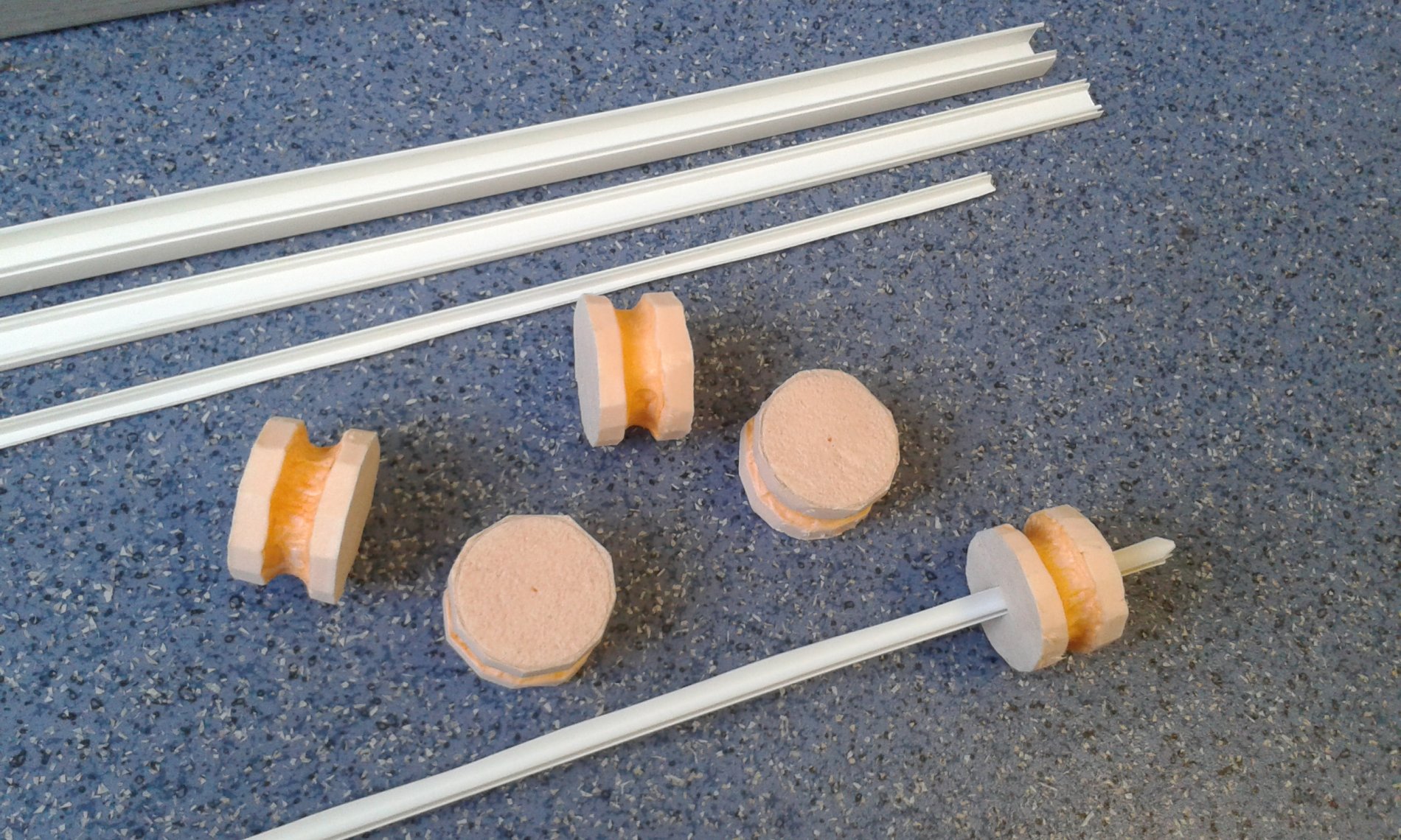 Есть много способов заякорить кружок. Самый простой это трубочка противозакручиватель как в фидере. Грузик на трубочке устанавливается на леске 60-70 см., поводок 40-50 см. Т.е. Живец всегда будет над дном. Но в этом случае радиус движения живца вокруг груза соответствует длине поводка. Второй старый способ это использование метрового шеста, который якорится. На одном конце шеста, буек с уходящей на дно леской и грузом якорем. На другом петелька с кольцом, которая накидывается сверху на кружок или привязывается снизу за штирь. В такой конструкции у живца большая площадь охвата до 1.5 метра в радиусе и запутывание за основную леску исключается. Вот картинка из нета: Если есть течение, то шест не нужен, достаточно просто лески. Если стояк, то чтоб живец не запутался за леску буй-груз ставят шест. Для этого шесты можно вырезать с камыша, орешника ... или использовать заготовленные. Думал взять трубочку от капельницы, завести туда тросик или толстую стальку, запаять, и с двух сторон вешать буйки, соответствующее грузоподъемности. Но на глаза попался пластиковый короб. Разрезал ножницами пополам, получились метровые, можно и 2-х, но возить не удобно, шестики, типа уголка. На один конец одеваем буй-катушку с леской и якорем, с другой пол пробки от шампанского. Устанавливается сначала буй, положил на воду и буй вместе шестом вращаясь доставляет груз на дно, дальше фиксируем леску в щели на шесте. Устанавливаем кружок и соединяем с другим концом шеста. Вот такие буду шесты. Канавку в пенопласте проплавил паяльником.