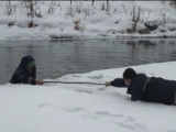3. Витягаючи потерпілого запропонуйте йому працювати ногами – так буде легше витягнути його з ополонки. Коли ви його витягли, не дозволяйте йому підніматися на ноги, нехай і він повзе слідом за вами до берега або міцної криги.