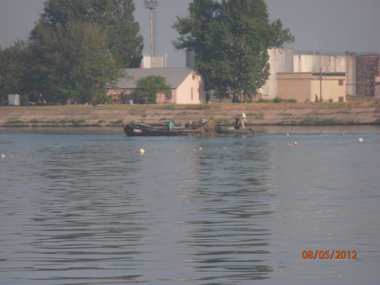 Как я понимаю в нерест запрещено ловить всем, как рыболову любителю так и промысловикам. Но как видим на следующих фотографиях, в Херсоне напротив нефтегавани ловят промысловыми сетями толстолоба.