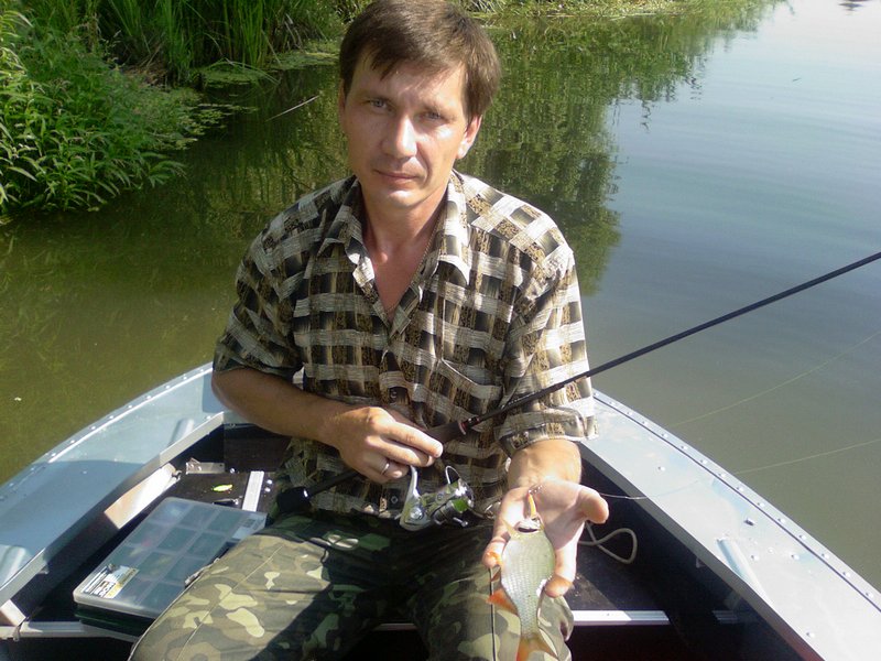 Немного с опозданием... 28.07.10 В 06.00 Я и Миша (МобиДик) были уже на лодочной в Беляевке. Обрадовало то, что вода очень заметно упала. Времени было мало, спустили лодку на воду и в путь на "Мертвый Турунчук" По ходу наблюдали в районе насосной (Днестр) машины и рыбаков с удочками. Берега уже видно отчетливо но с большими лужами грязи... Двадцать минут и мы на "Мертвом Турунчуке". Глубина внушает доверия 2-3 метра. Запах гнили повсюду, местами кристально чистая вода меняется на мутную. Два часа махания спиннингом результат не принесли. Пробовали тролить и тоже ноль. Перешли на ерик "Фестивальный" нашли перспективное место с протокой и кучей малька и решили бросить якорь. И вот тут все началось:i070522: Левая часть берега кристально чистая вода, правая часть мутная вода. Как раз на границе малек и держится. За полтора часа поймали 5 шт щучек от 500гр до 1кг. Миша поймал несколько окуней и на двоих примерно 20 шт красноперки размером с ладонь (ловилась на воблер) Такую маленькую красноперку ловил на воблер в первый раз. Азарта я получил намного больше чем от ловли щуки Миша спасибо за компанию:gimmefive2: ps: на сегодняшний день уровень реки еще ниже. В Беляевке на лодочной можно пройти пешком к Турику. Видел одного спинингиста с уловом 3 щучки за два часа, пойманы на канале.