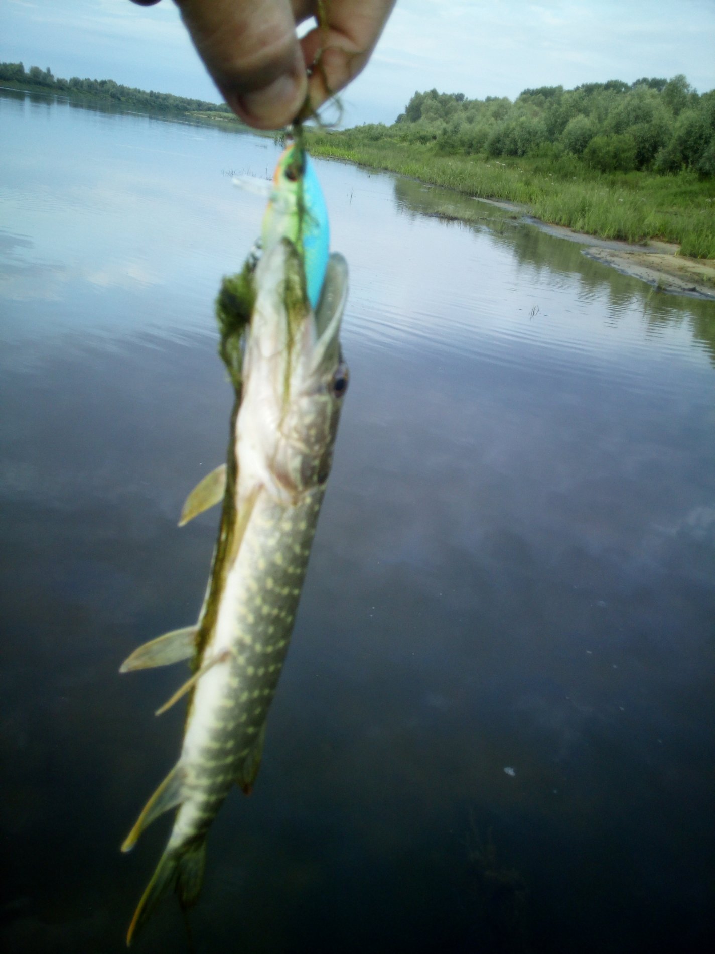 Продолжение темы: Вчера, как говорится, "уперся" в данный воблер по причине продолжающегося падения воды на Десне. Для меляков он собственно и покупался. Результаты в количестве, если не в качестве, положительные. Ловил по руслу реки вдоль берега по косам вдоль растительности и над травой, где глубины максимум пол метра (а до травы сантиметров 20, в лучшем случае), и по небольшим заливчикам, превратившимся уже в "лужи" но где еще осталось немного чистой воды, чтобы закинуть воблер. Ловились в основном "шнурки", которые даже не могли заглотить воб полностью (пример на фото, все отпущены расти дальше). Брали при остановке воблера, но еще дотого, как он успевал всплыть (поскольку ныряет он сантиметров на 20-30 максимум, то получается сразу как останавливался). Так что данный экземпляр вполне рабочий по мелкой воде. Когда добрался до мест с большими глубинами, свою эффективность, в данной конкретной рыбалке, он утратил и я перешел на более глубоководный воб другого производителя (и более успешно в плане размера рыбы, но этот пост не о том). По поводу "минусов", которые указывал выше: то они уже не такие и проблемы. Крючки секли рыбу нормально и не было ни одного схода, так что менять пока не буду. Что касается перехлестов, то по совету знающих людей в рубрике "методы забросов" стал придерживать шнур перед приводнение воблера, чтобы шнур был натянут, и это решило проблему частых перехлестов (конечно встречаются, это уже не так часто). в общем приманка данная вполне рабочая. думаю и более крупную щуку будет ловить, нужно только ее найти