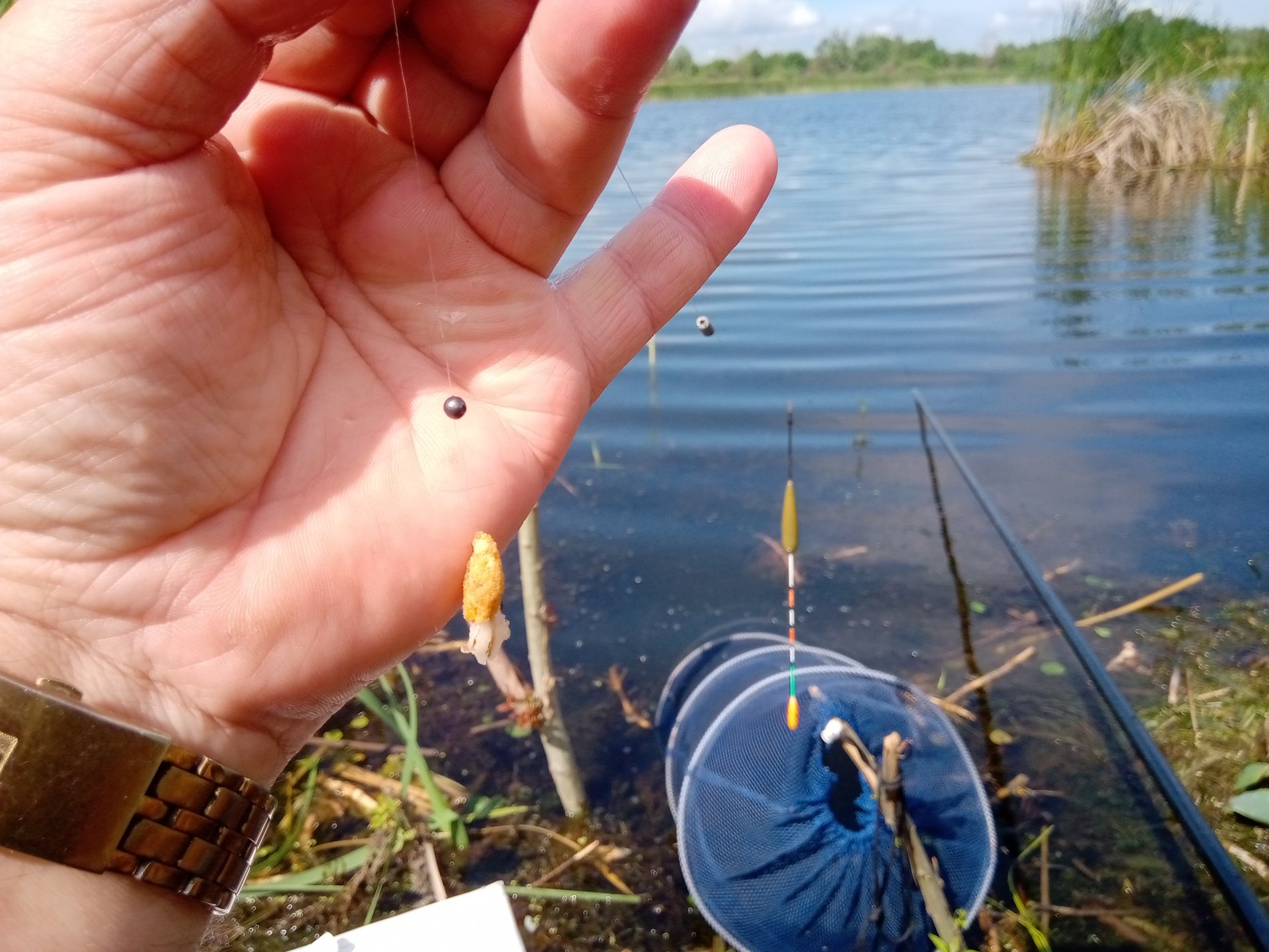 Пришлось модернизировать насадку. Насаживал перловку и сверху пылящие тесто. Именно на нее и поймал три карася, линька и десяток красноперок для кота. Красноперка разрывала тесто и собирала крошки, а перловку иногда оставляла карасю.