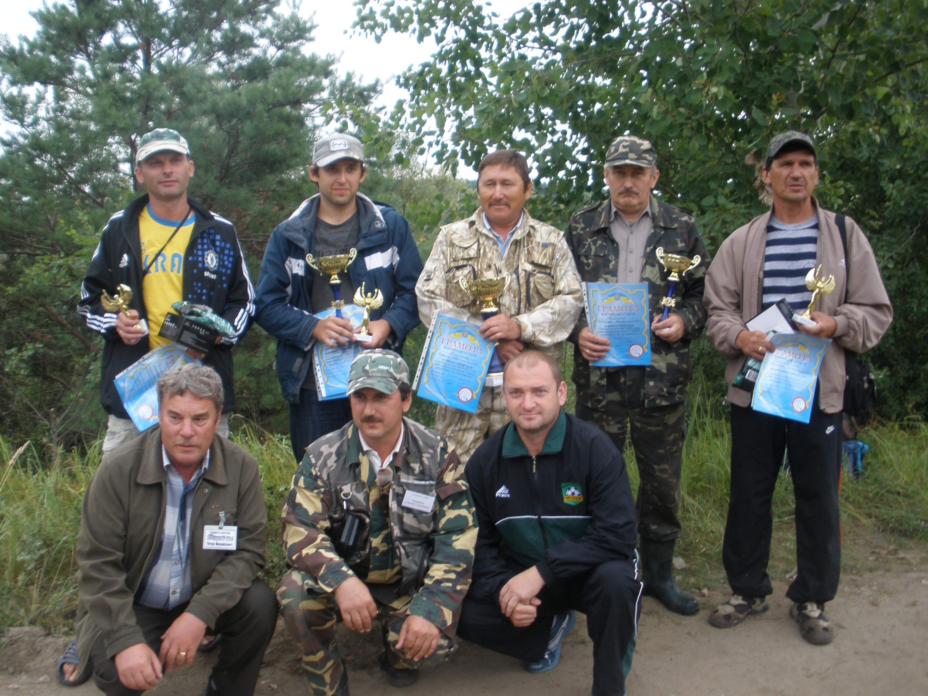 РС: Фото призеров: верхний ряд слева на право - Самая малая рыба, Второе место, Первое место, Третье место, Самая большая рыба, Внизу судья, организатор, спонсор.