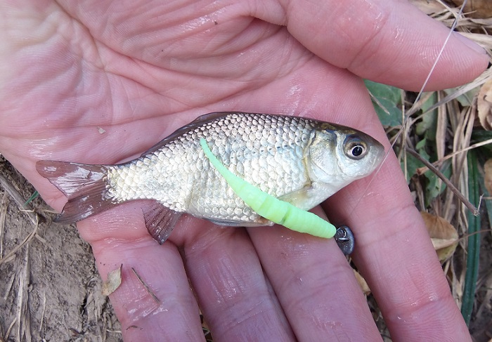 Сегодня получилось пораньше умотать с работы, выехал немного продолжить спиннинговый сезон, зубатая молчала, решил немного погонять полосатого разбойника, который был спортивных размеров. Сегодня работал силикон от Селект, который именно - на фото. Так же на желтый Джавик позарился, а может просто забагрился мелкий карасик. Вторая спиннинговая рыбалка в этом сезоне не принесла желаемого размера, ну ничего, так даже еще больше азарт!)))) Все рыбы безжалостно топились.