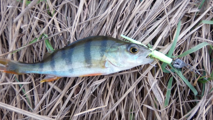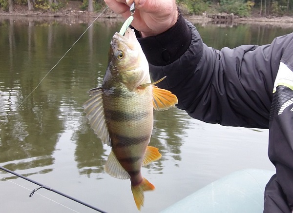 Немного поплавал, погода, то солнце, то ветер, то дождь. В улове немного окуней и порадовала щука на 2 кг. 880 гр. И окуньки и щука взяли на Кастмастер 14 гр.