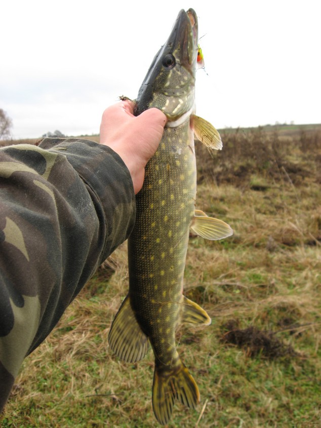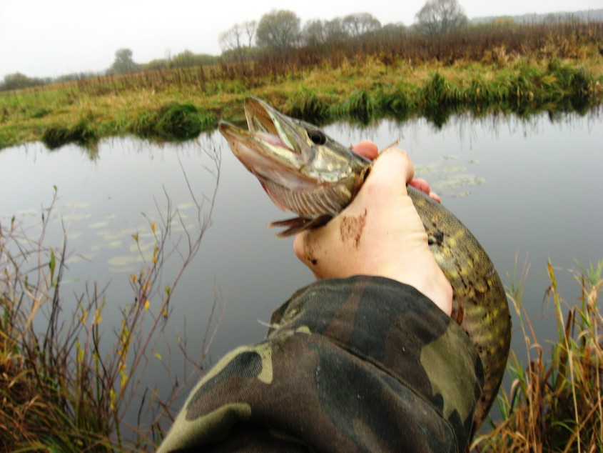 Завдяки карантину мав можливість майже два тижні час від часу їздити на рибалку. Відкрив для себе одну старицю, глибини максимум до метра (може й до 0,5м) , а основна площа сантиметрів 30-40. Заросле ряскою і місцями лататтям, з берегів лепеха (аір), тому ходити там іноді - суцільна аромотерапія. :D Працював хардкор 0, інших приманок і не пробував. Від добра добра не шукають...Загалом було виловлено за 3 рибалки під 2 десятки щук, кілька шнурків випустив. Виходи, промахи, сходи - все як на долоні, вода осінню чистенька. :ura: От тільки говорять, що пресують там місцеві то болотце всім чим можуть...І між щуками там напевно сильна конкуренція. На одній з фотографій щука вкушена з хвоста, з іншої сторони чітко видно U-подібний слід від нижньої щелепи. :predator: