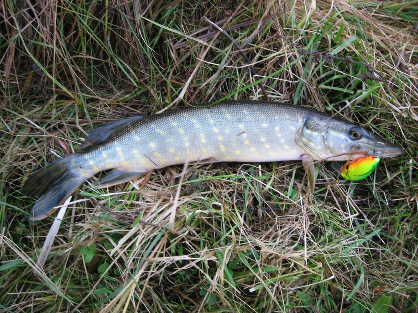 У меня одна щучка взяла на бипластиночный АТОМ от Джексона (одна пластина "золотая", вторая - "серебряная", вес 21г), все же остальные - на новую (впервые встретил такую расцветку) МЕПСовскую "3" с черными точками, причем это не "Комета", а "Аглия" (на фотке).
